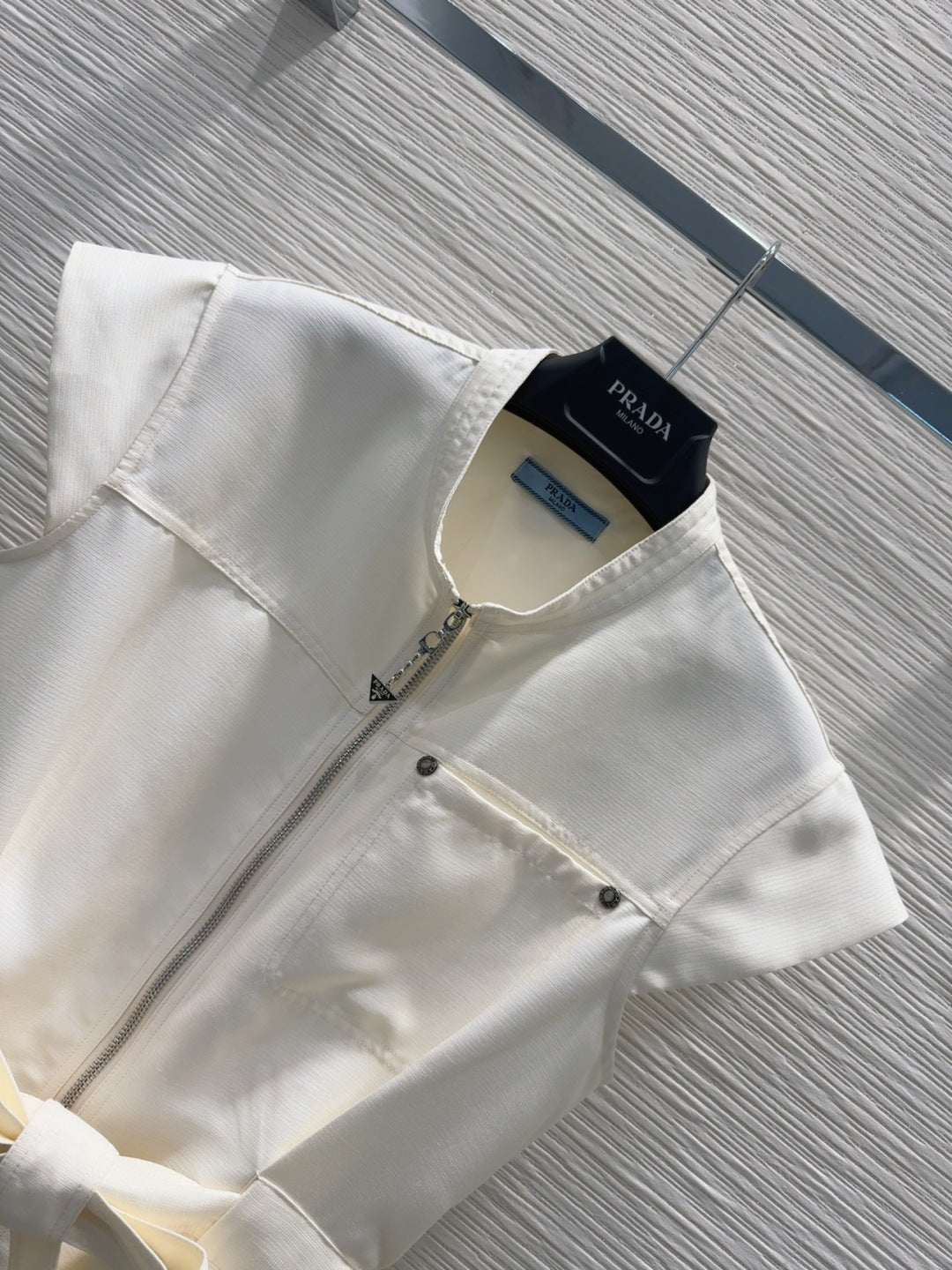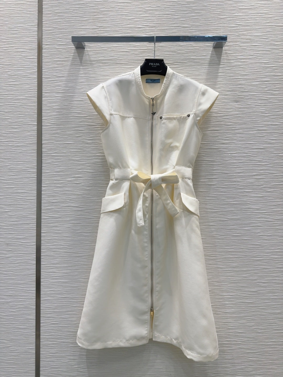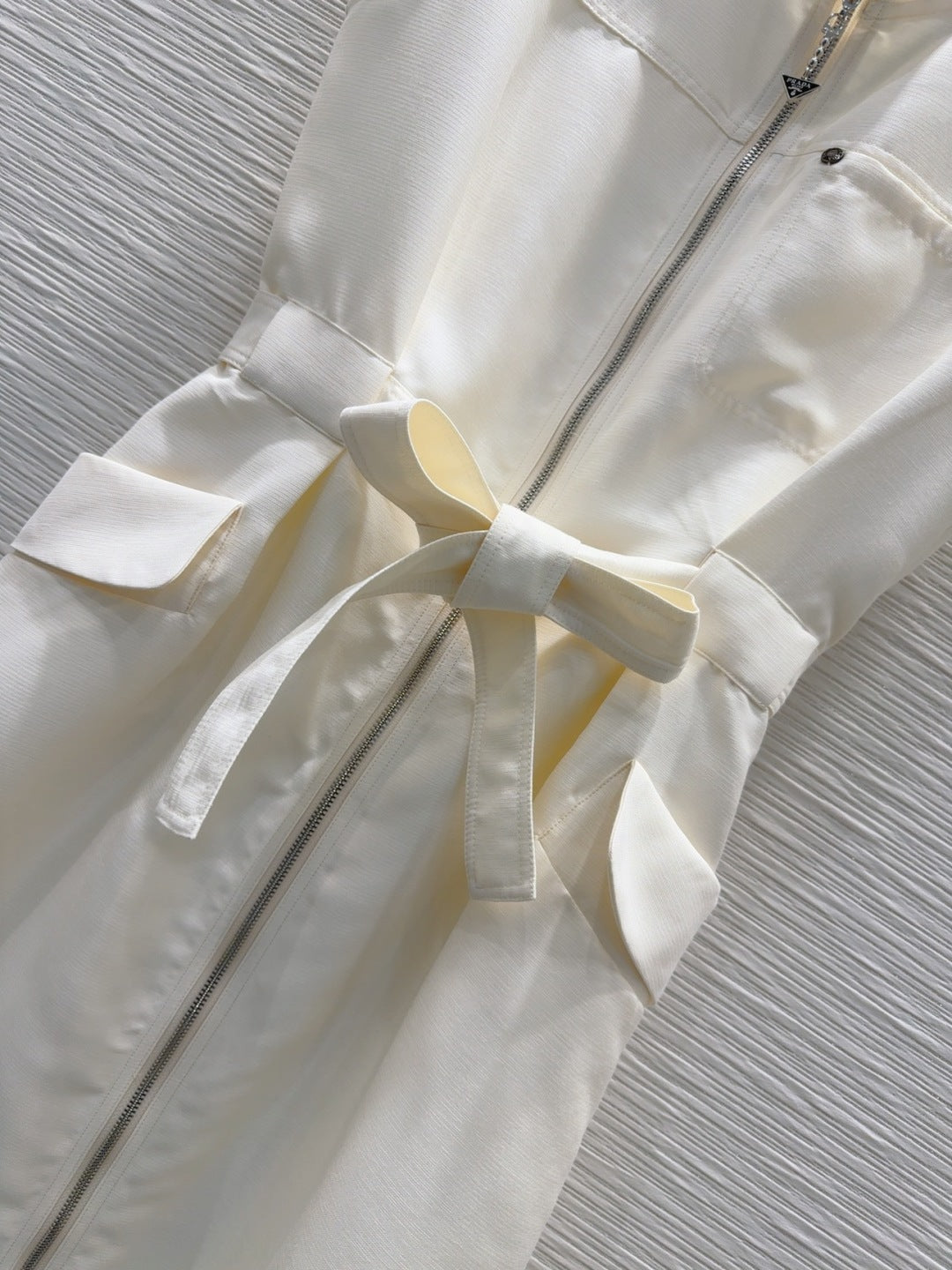 Prada 25 Bow Dress White Silk Wool Polyester