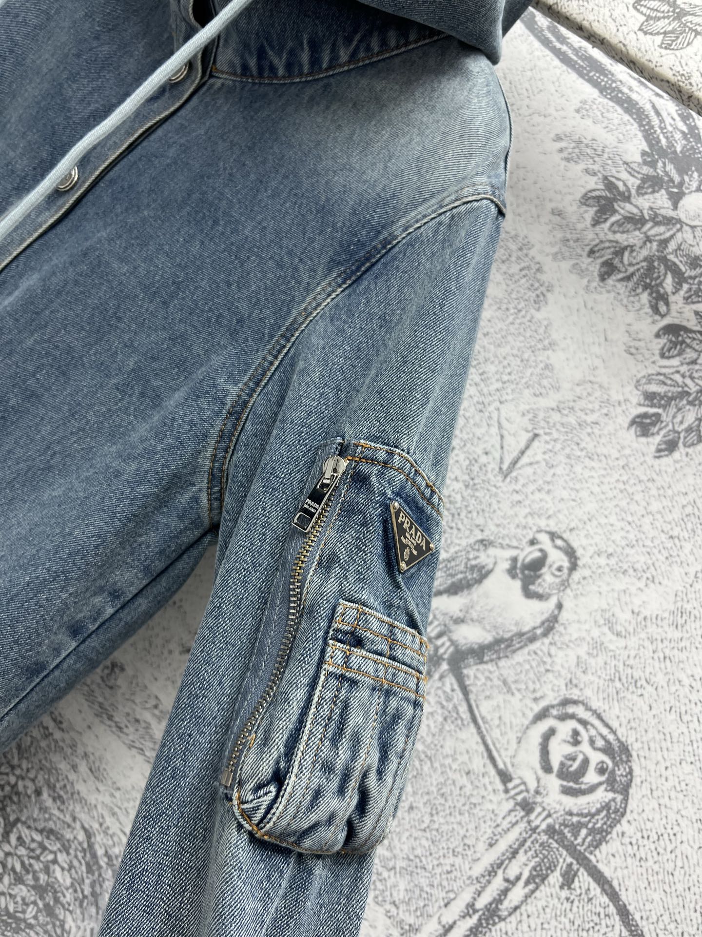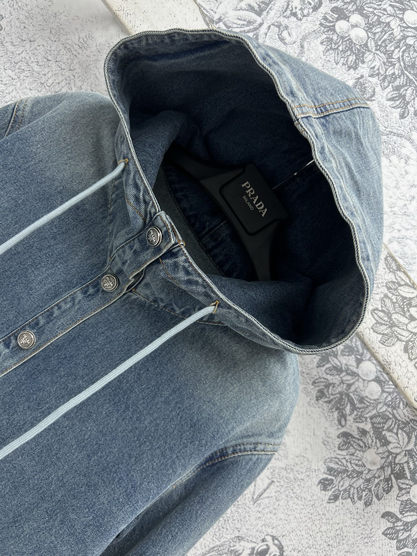 Prada 25 Hooded Denim Jacket Blue Cotton