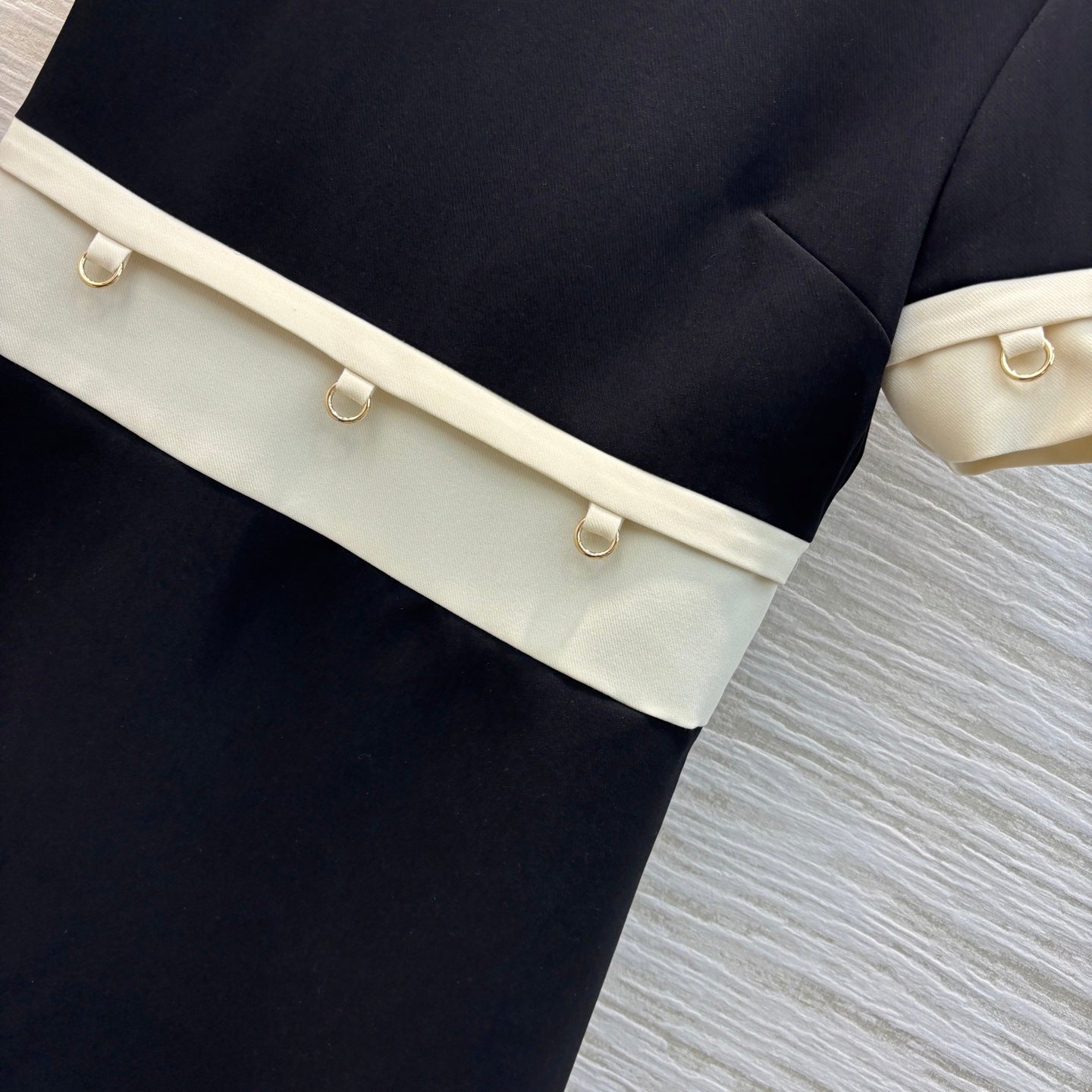 Prada 25 Patchwork Short-sleeved Dress Black mix Beige Cotton