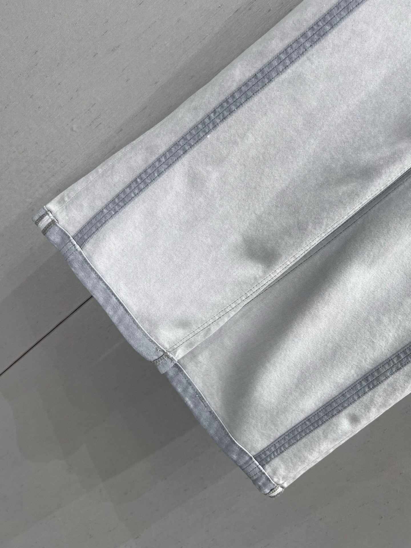 Prada 25 Vertical Striped Denim Pants White Cotton Polyester 215076
