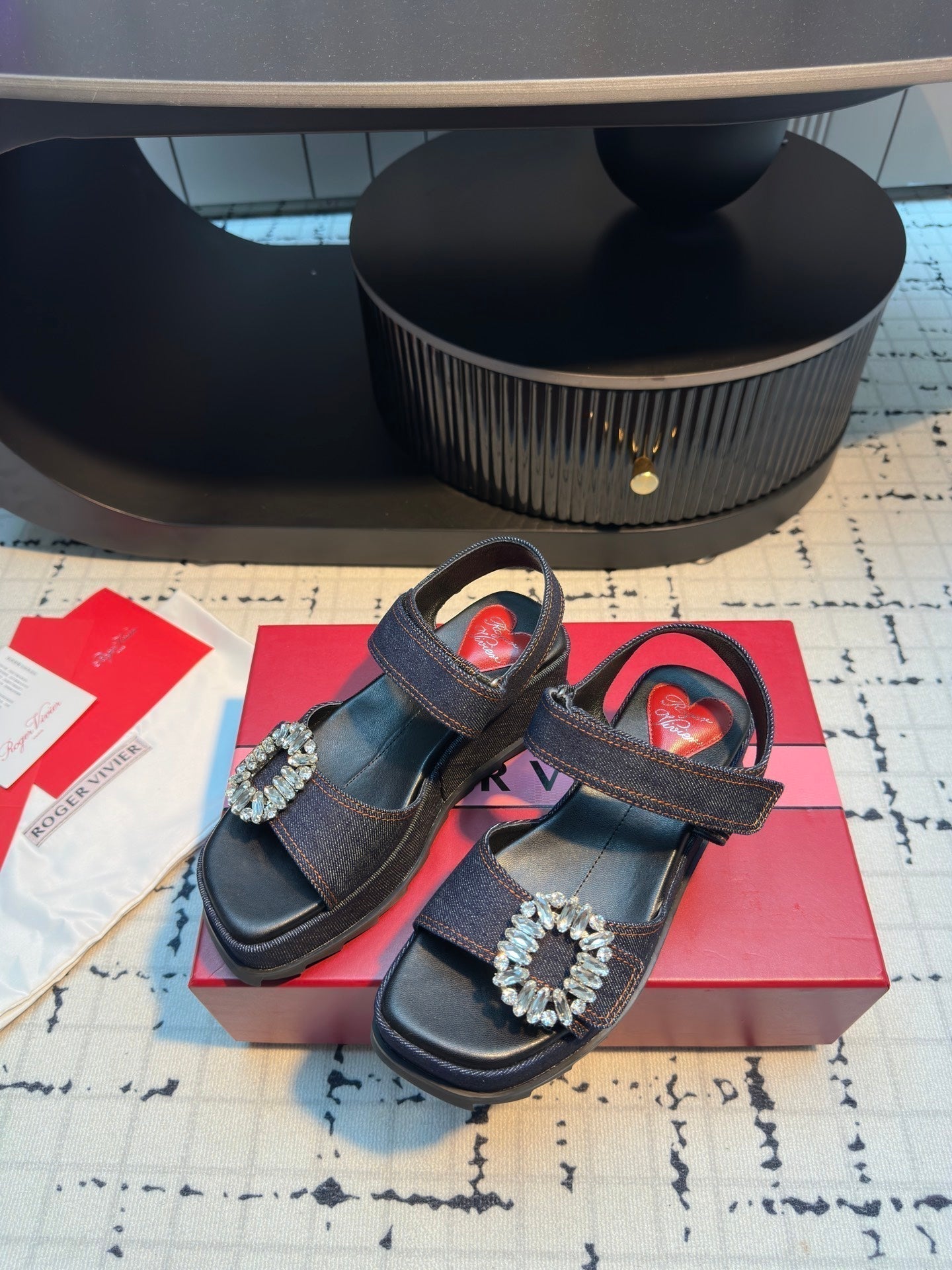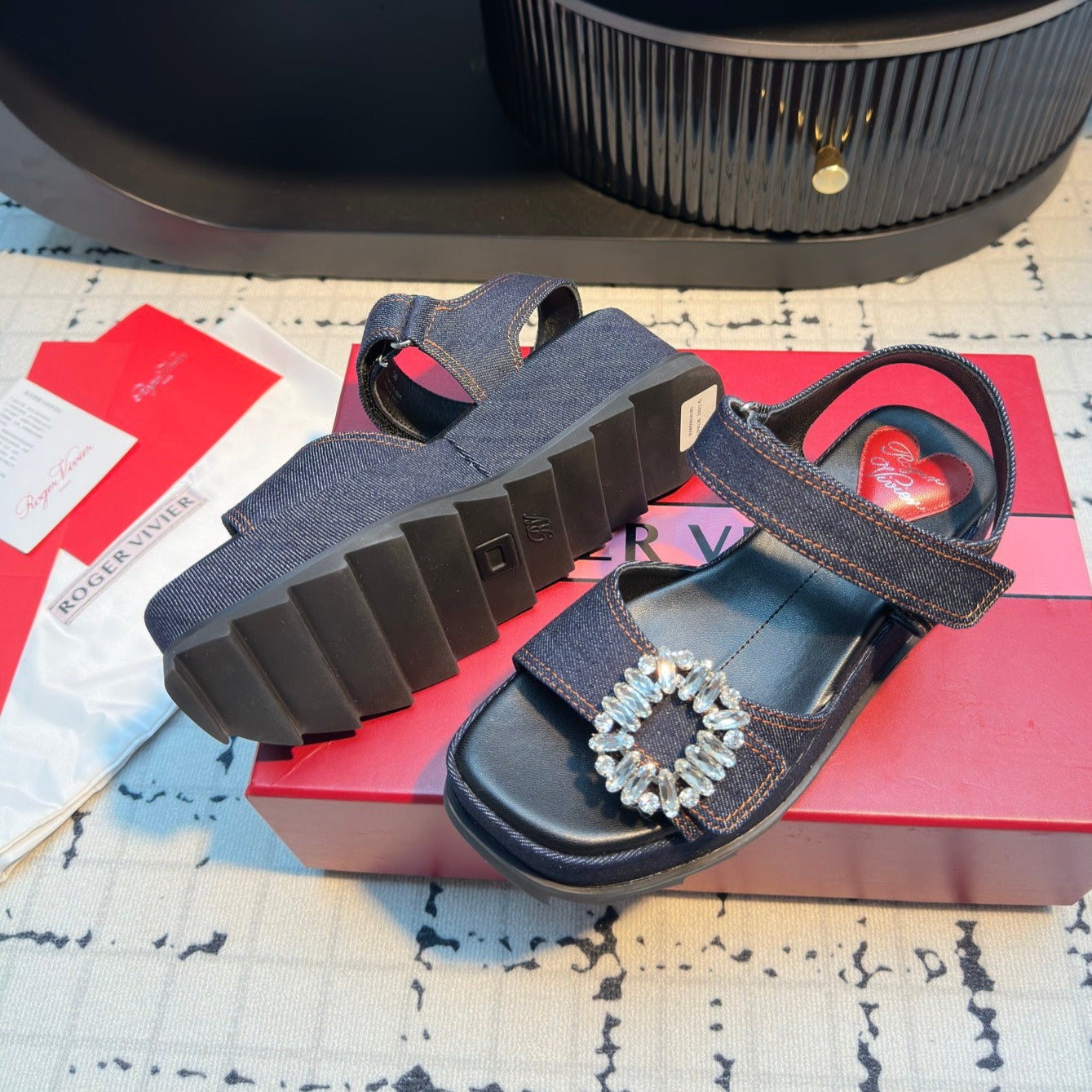 Viv Denim Sandals Blue Matte Leather 316936