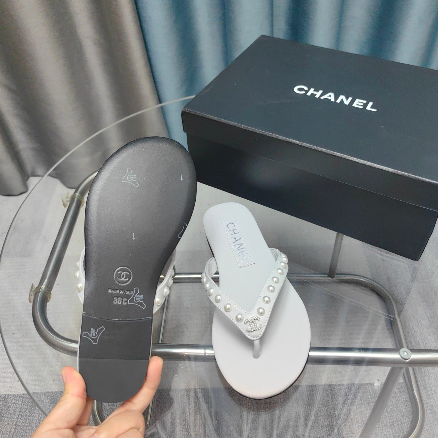 CC Thong White Calfskin Pearl