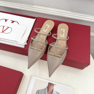 Rockstud Wispy Beige Calfskin Mule 20mm