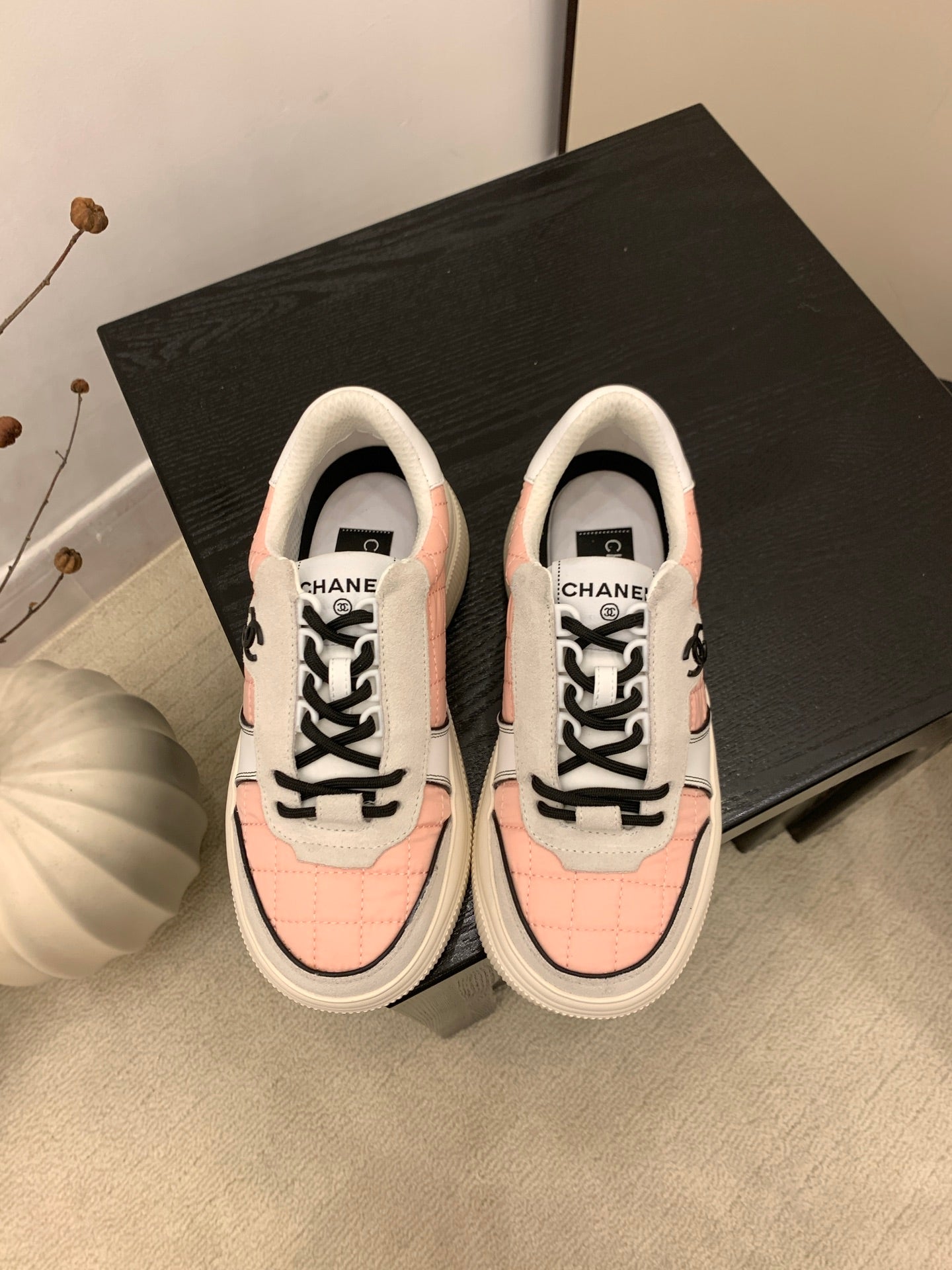 CC Alexander McQueen Sneakers Pink Gray Black Leather and Ceiling Fabric 537192