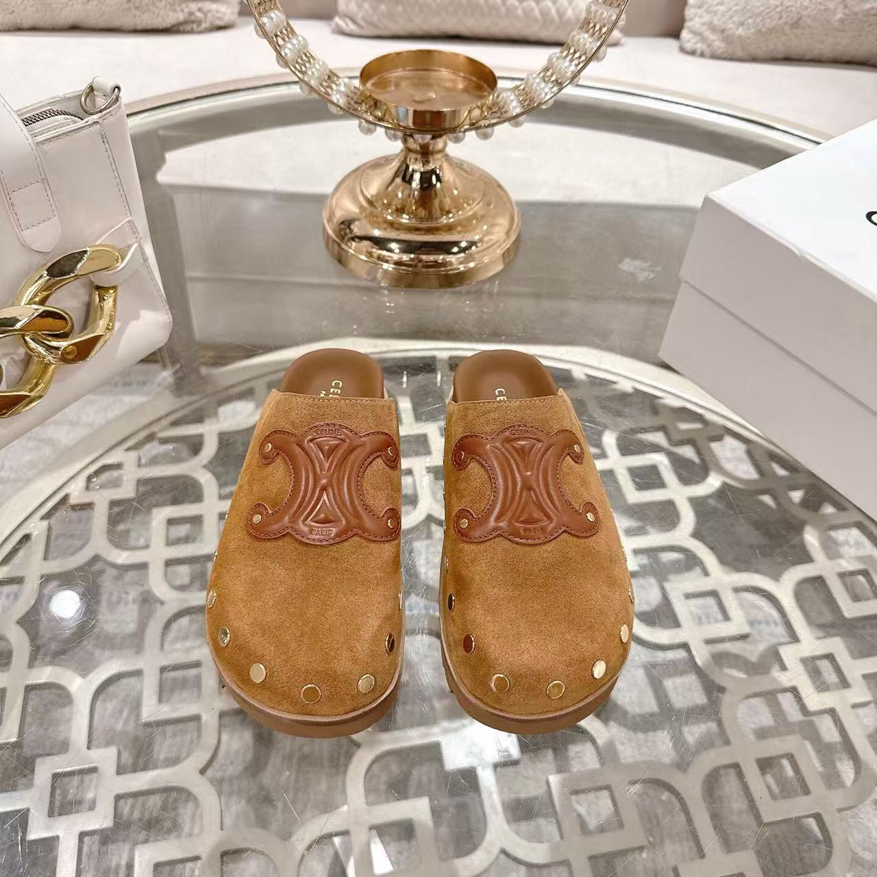 Celine 25 Rivet Birkenstock Slippers Brown Suede