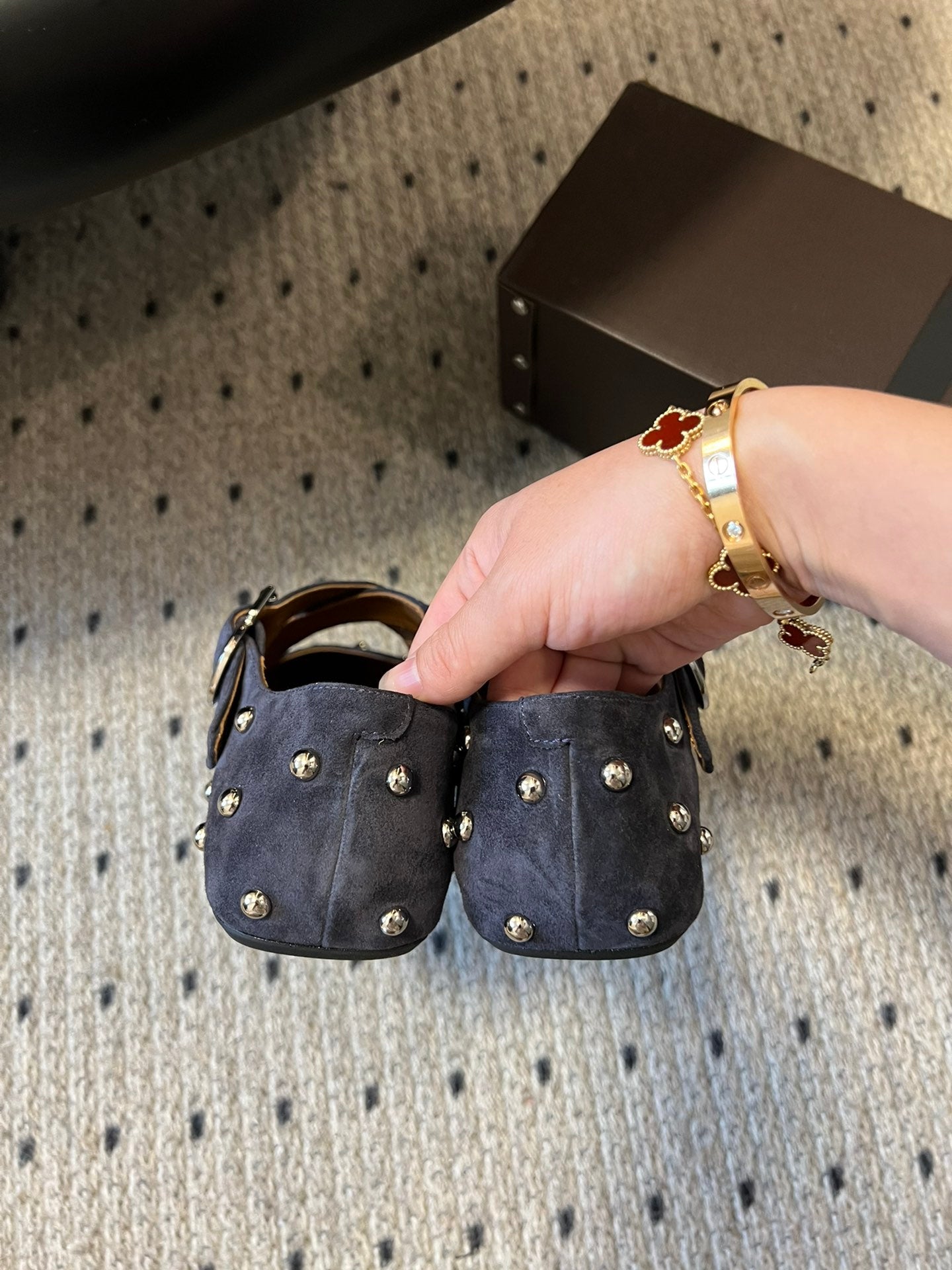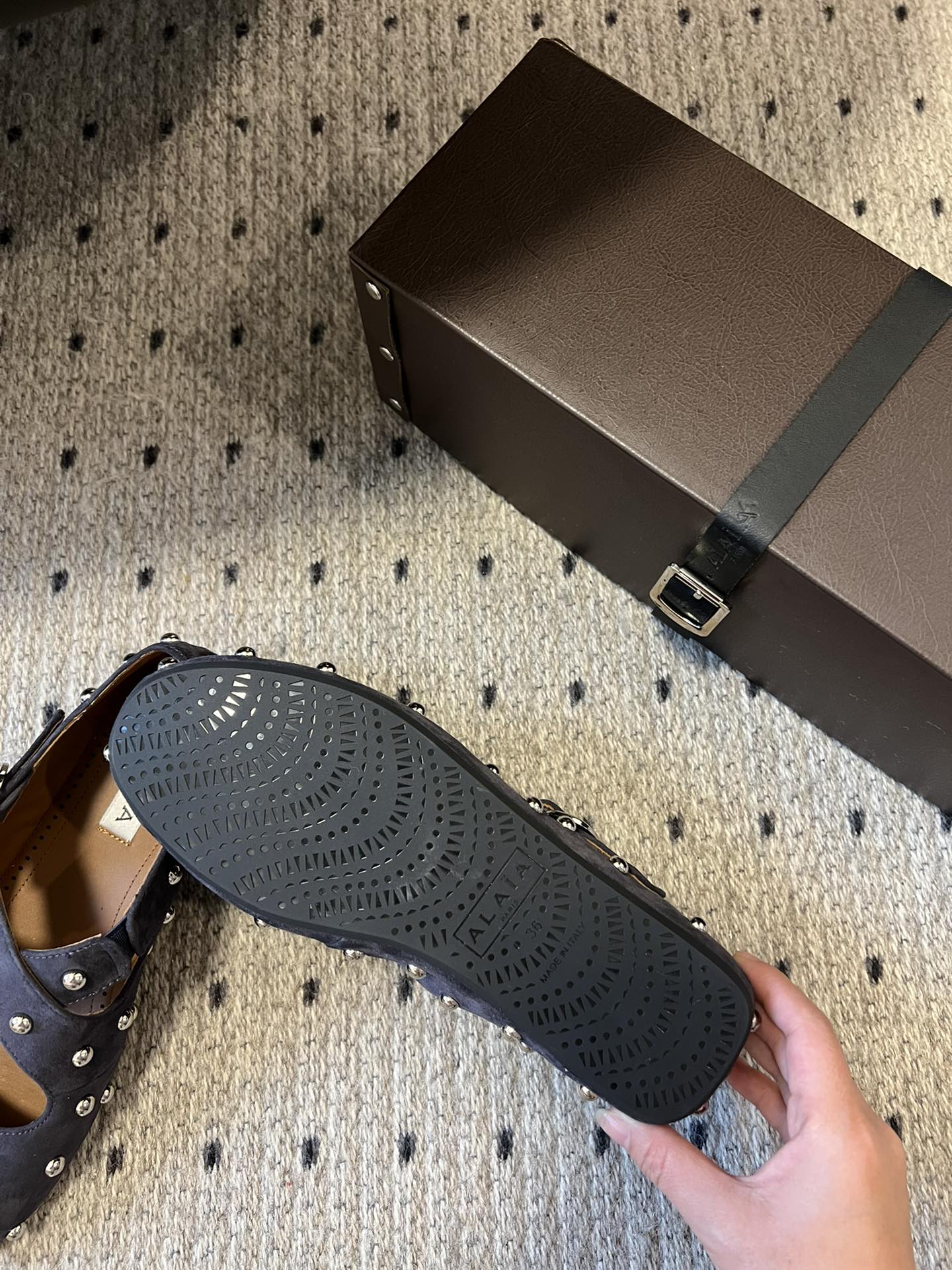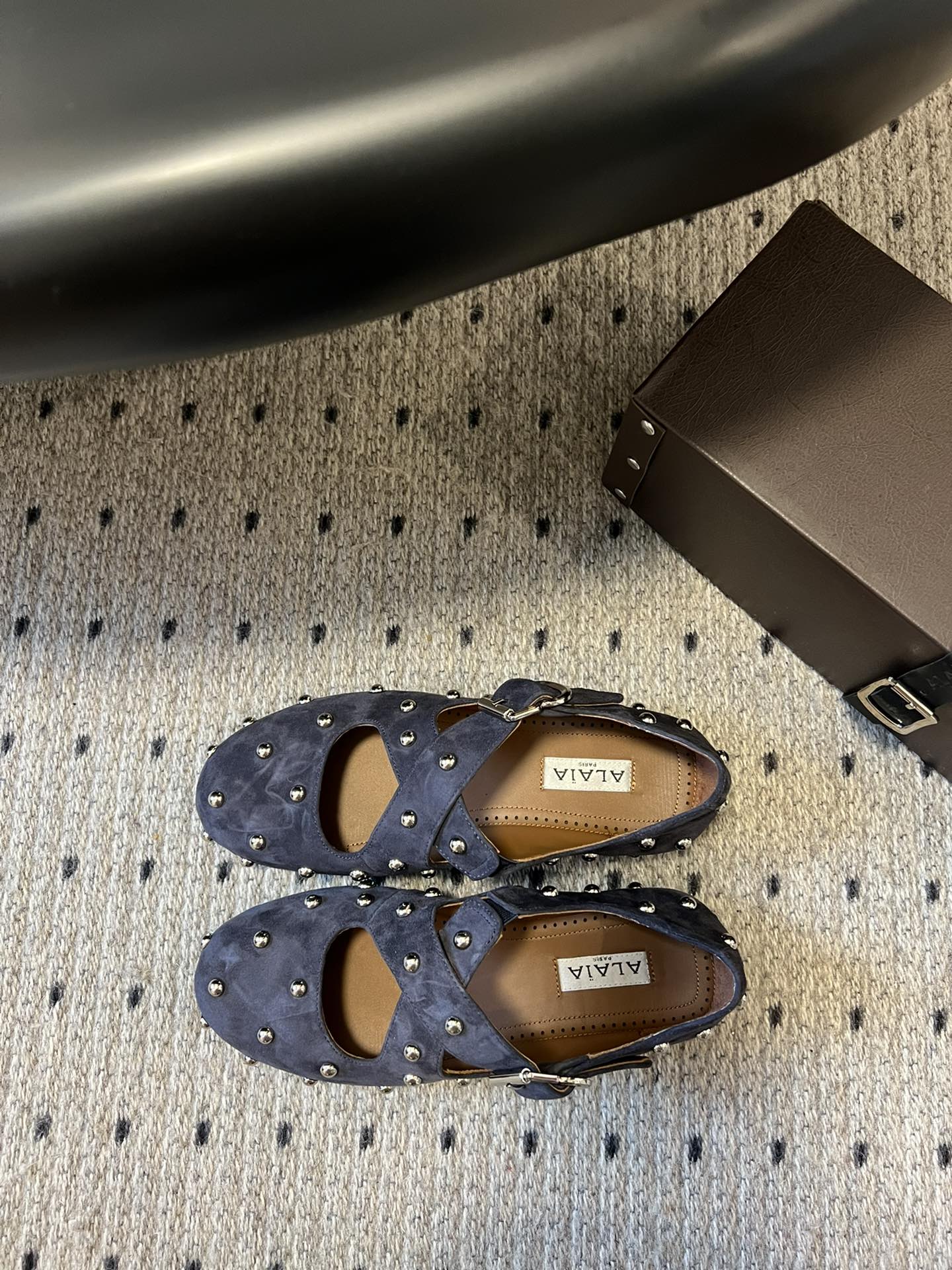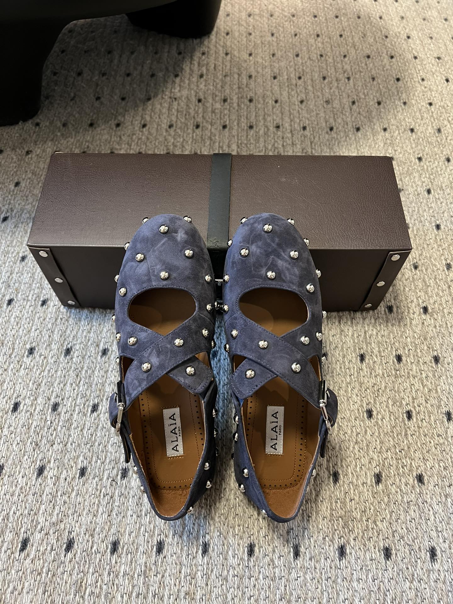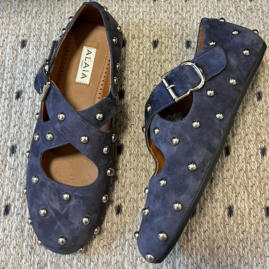 Alaia 25 Criss Cross con borchie Ballerine in pelle scamosciata di pecora blu azzurro 303691