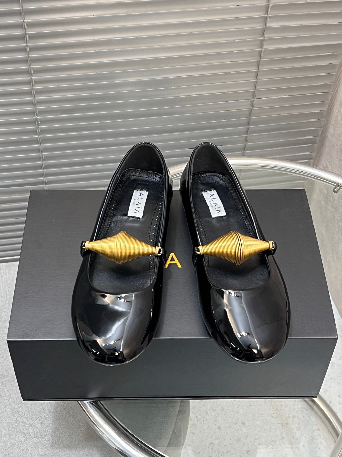 Alaia 25 Jewel Patent Leather Ballerine Nero Agnello 300012