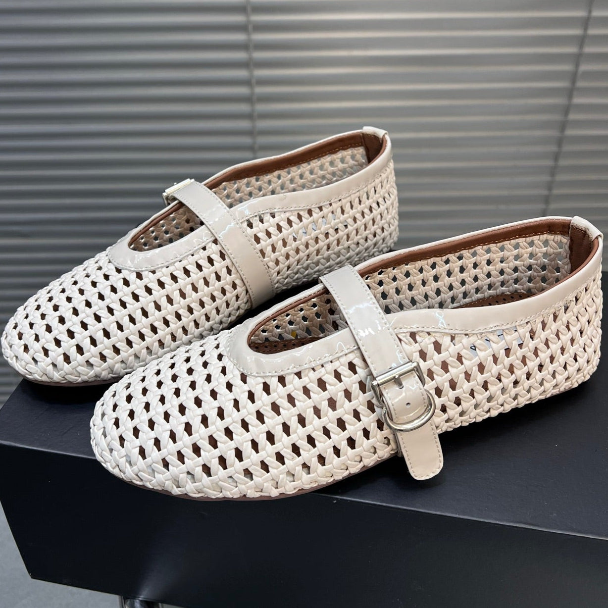 Ballerine Alaia intrecciate in pelle di vacchetta avorio 300043