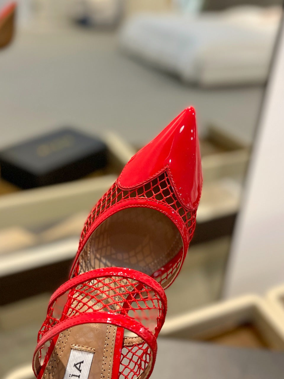 alaia mule 85 fishnet cuore rosso pelle di agnello