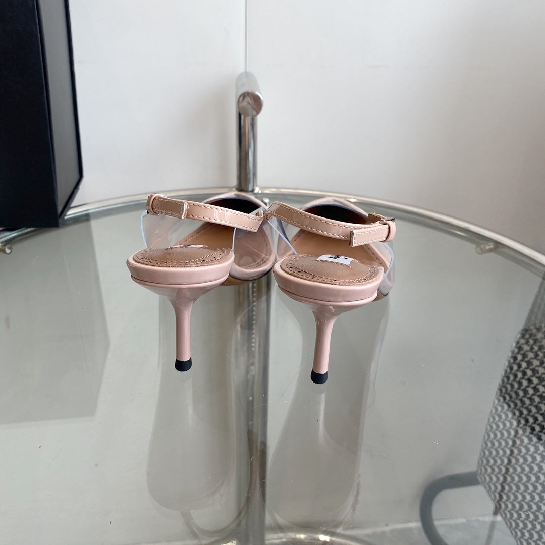 SLINGBACK ALAIA ALTA 6 CM IN VITELLO VERNICIATO BEIGE CREMA E FILM