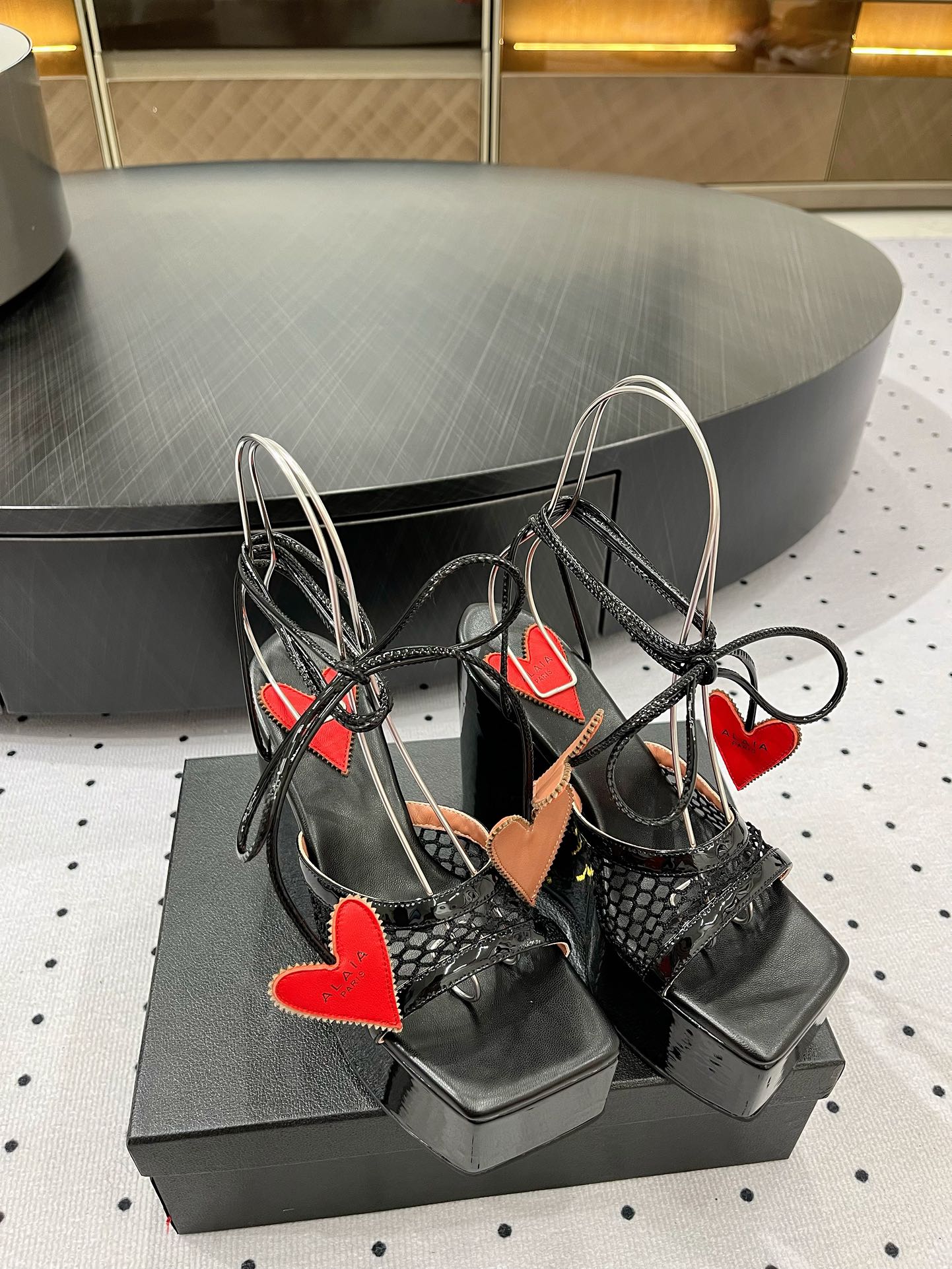 Sandalo alto Alaila 115 mm in tessuto a rete nero 954864