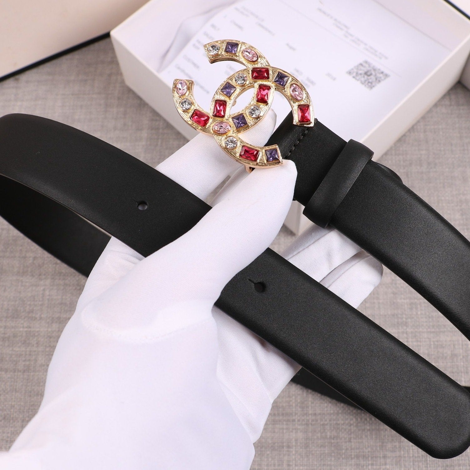 CINTURA DA DONNA CC CON FIBBIA IN PELLE NERA ORO 3,0 CM