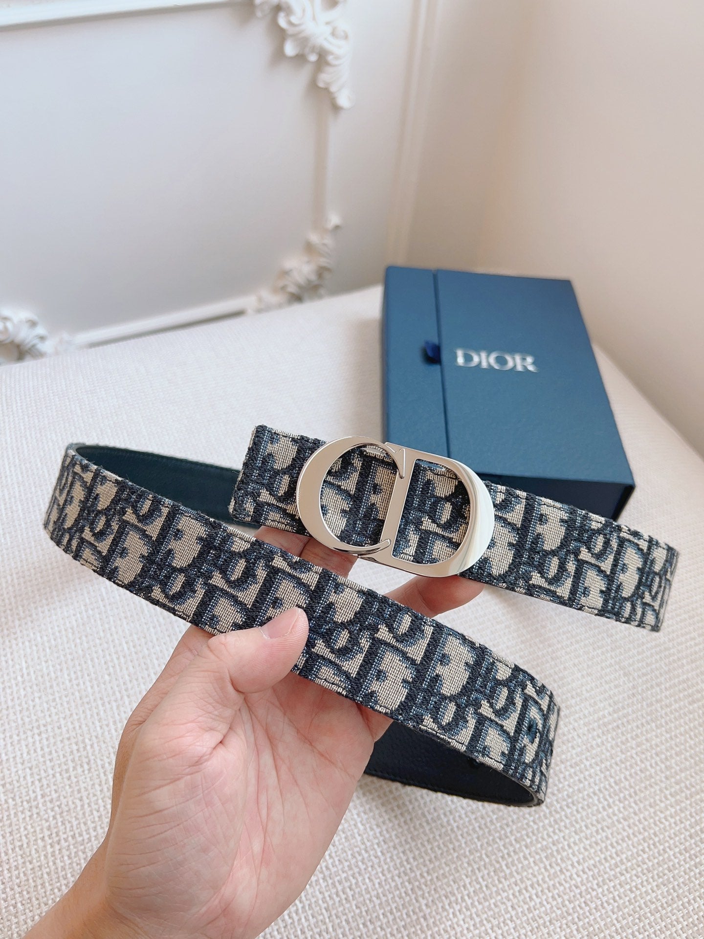 CD Belt 35mm Black Beige Canvas Black Calfskin Silver Buckle