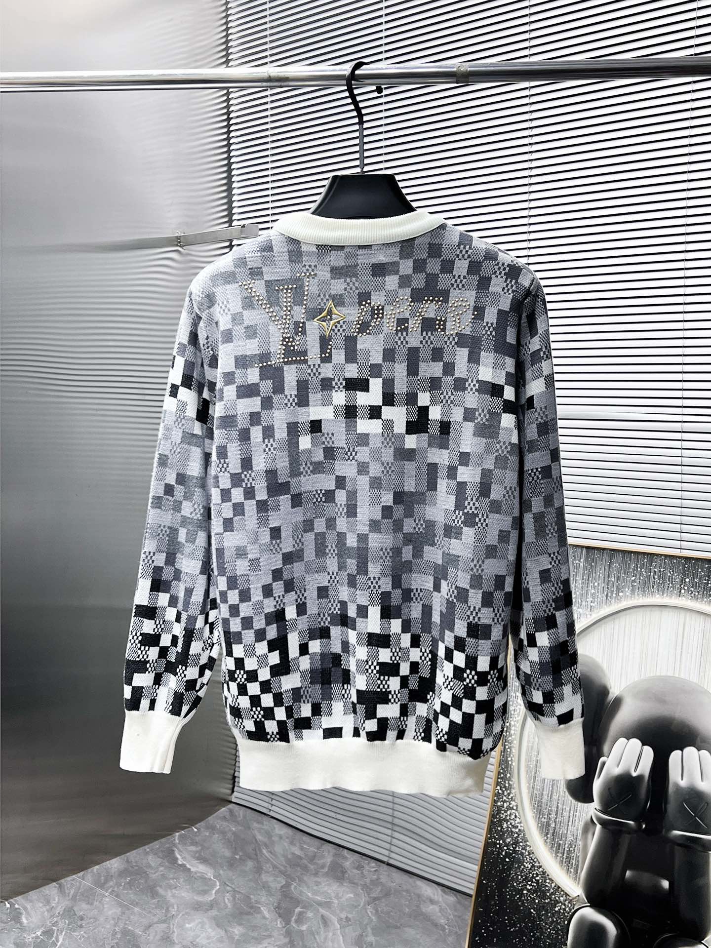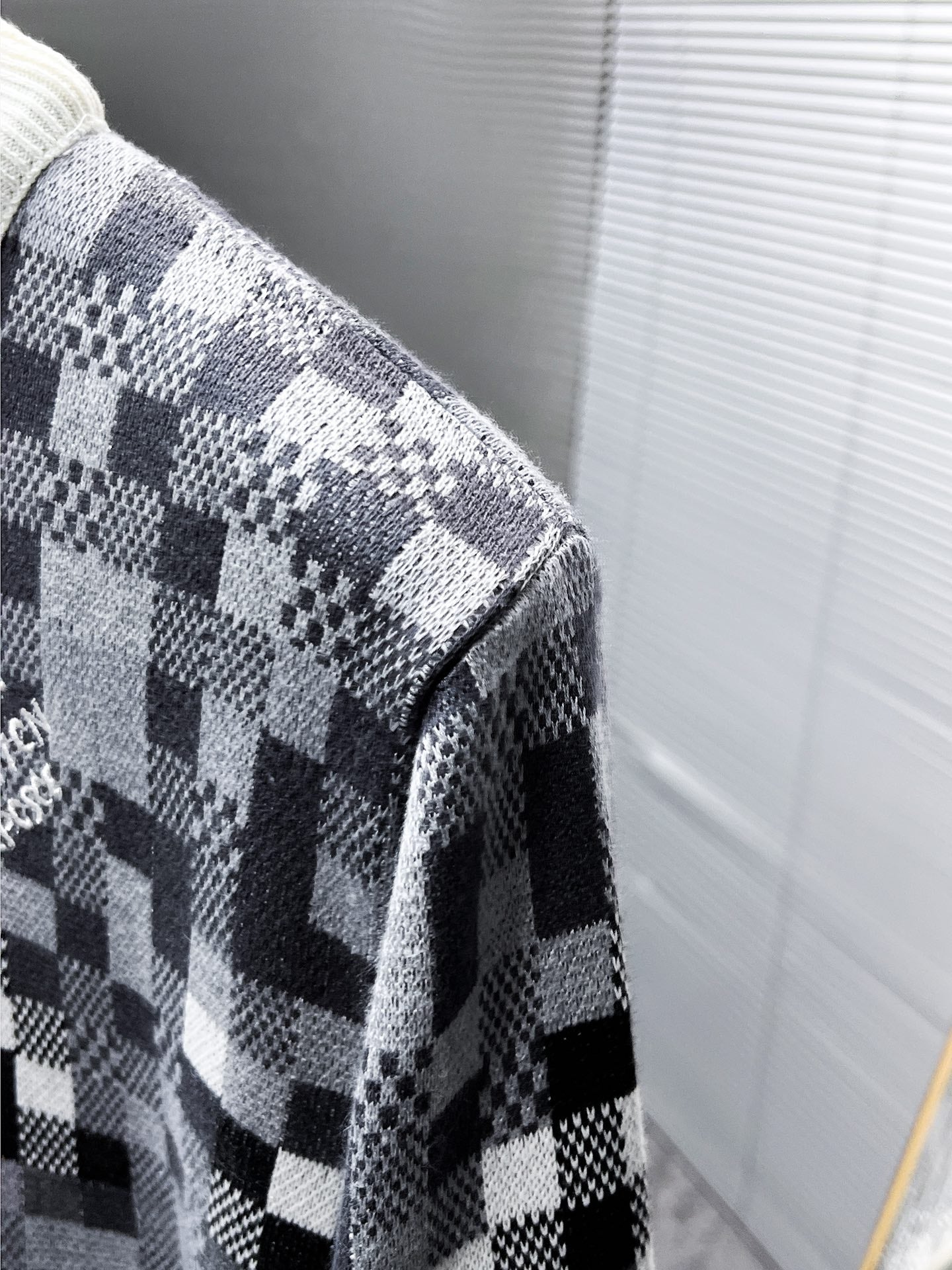 MAGLIA LV IN LANA GRIGIA, NERA E BIANCA CON MOTIVO DAMOFLAGE 238799