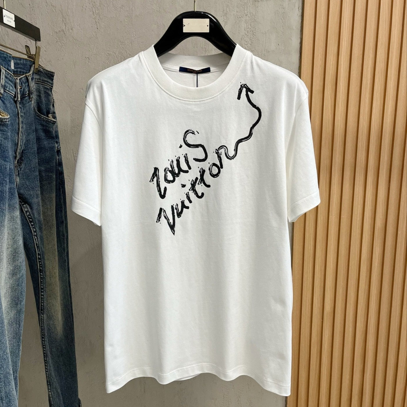 T-SHIRT LV IN PURO COTONE BIANCO CON STAMPA LOGO 238775