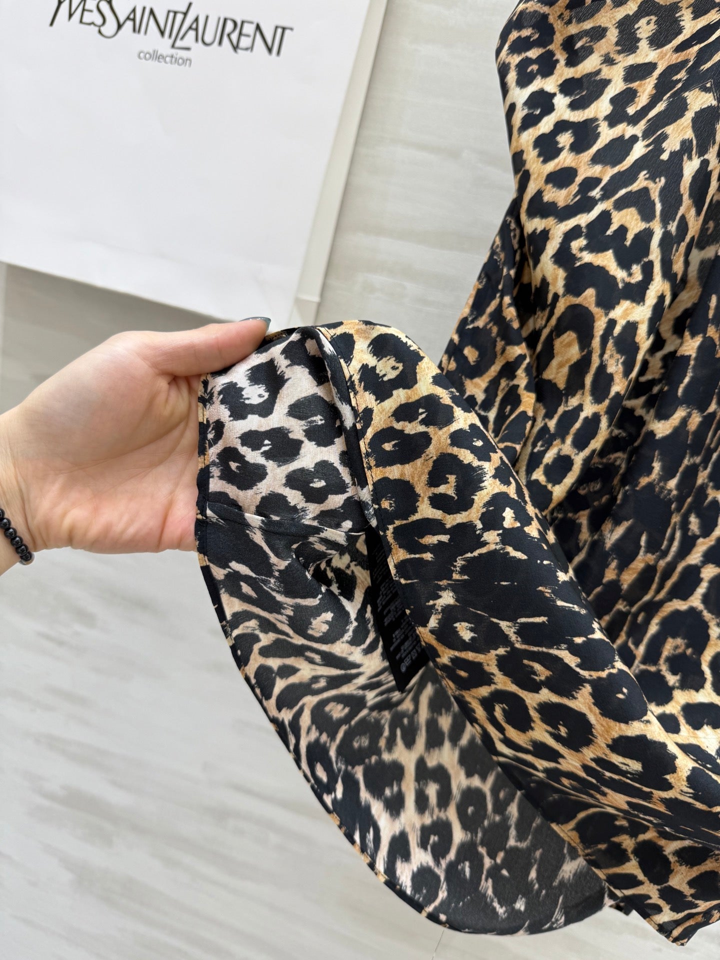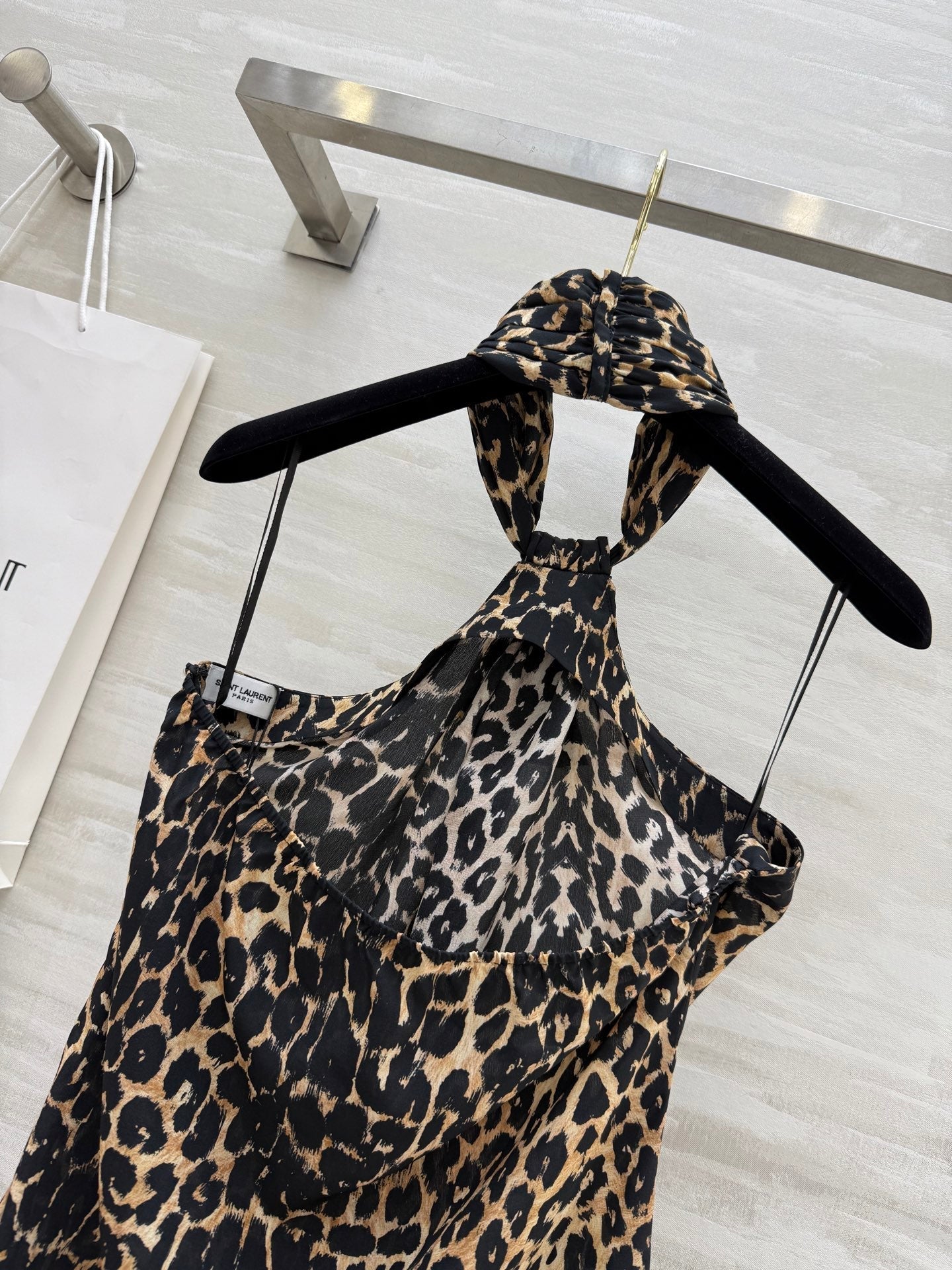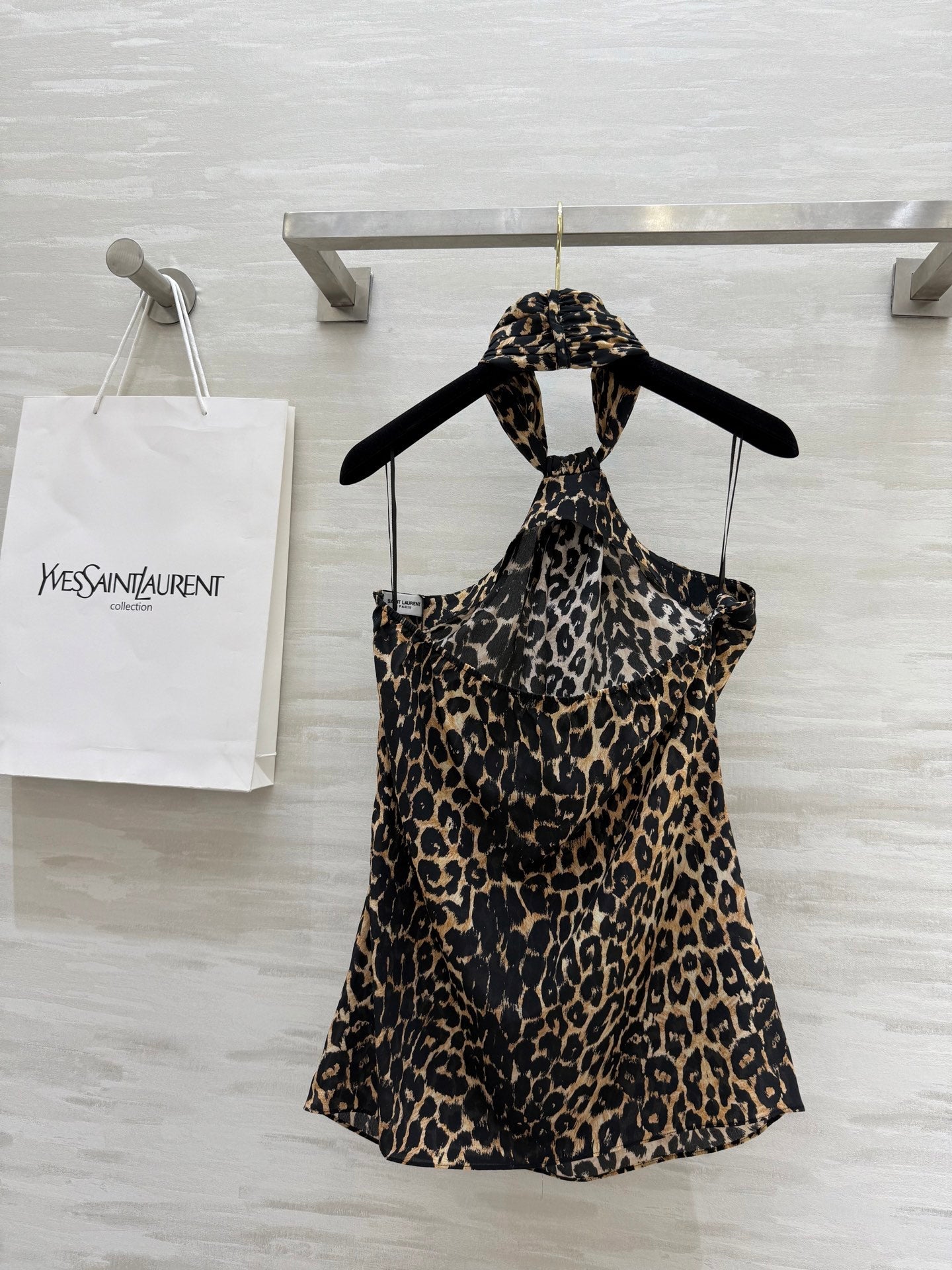 YSL 25 Gilet con bretelle e scollo all'americana in seta leopardata