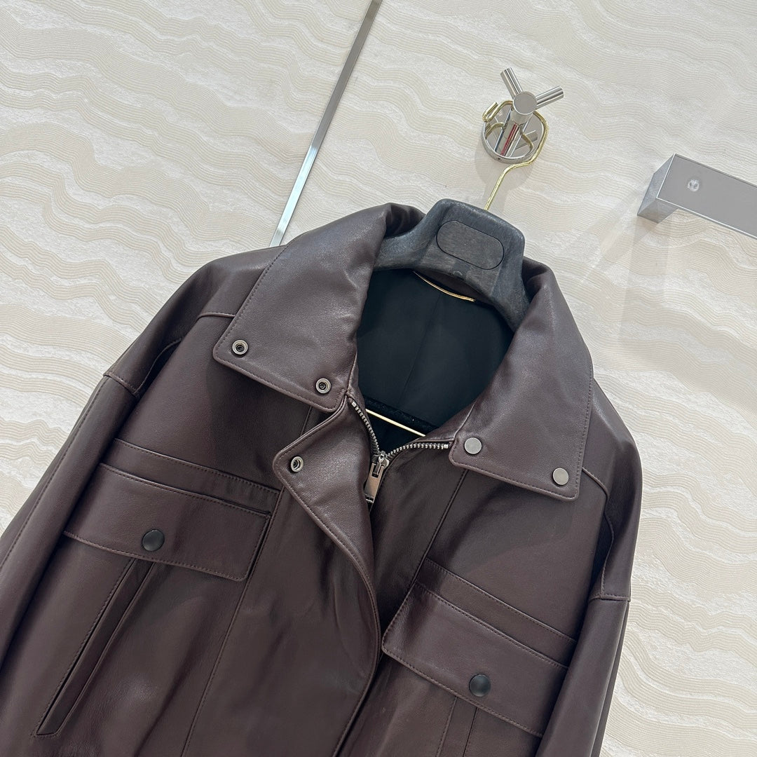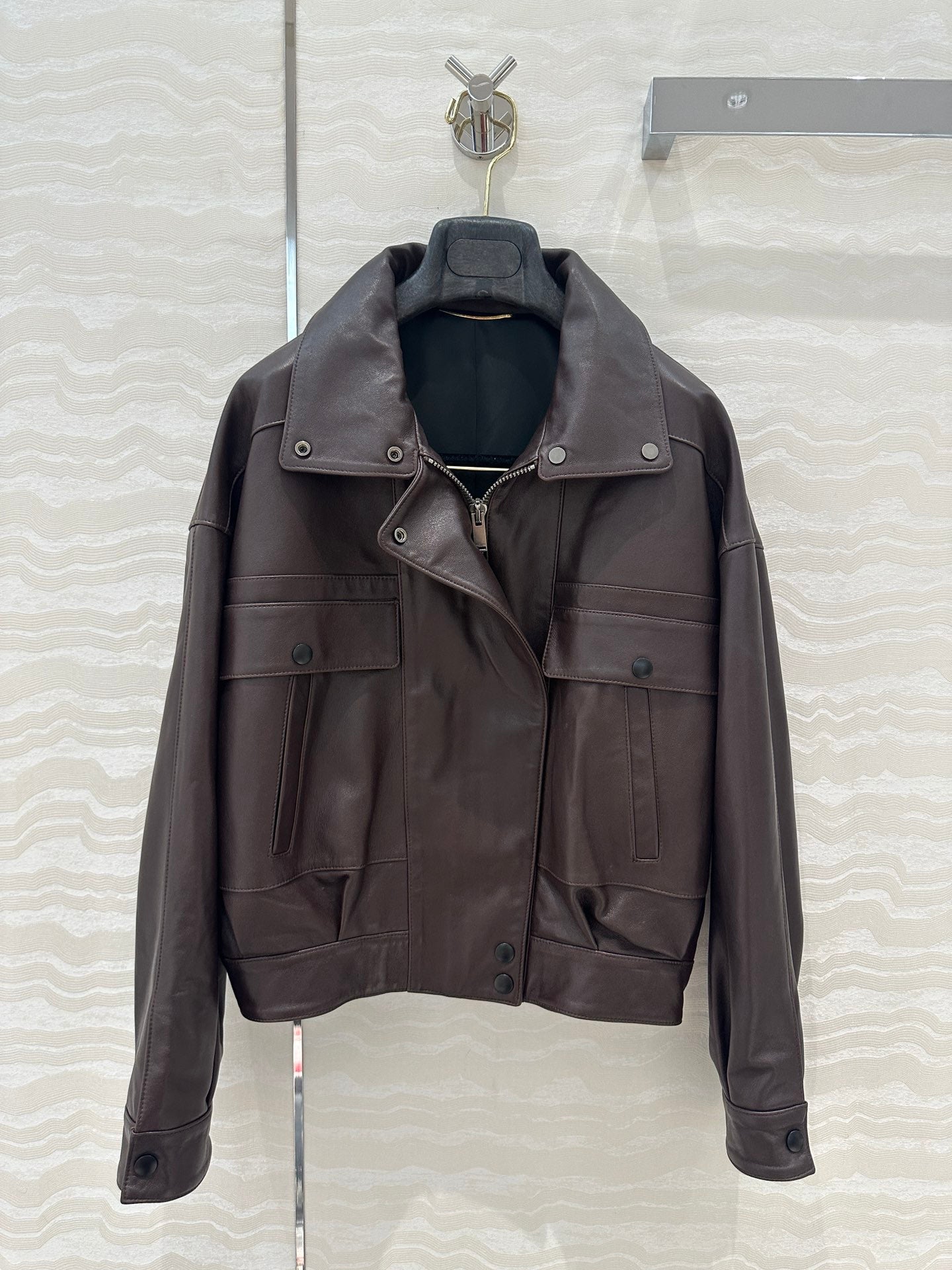 Giacca YSL Double Pocket Silhouette in pelle di agnello marrone