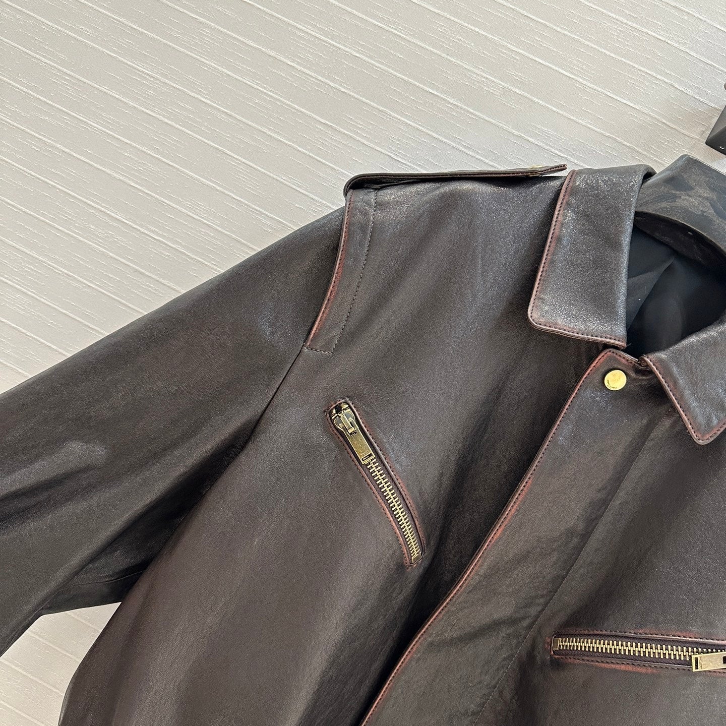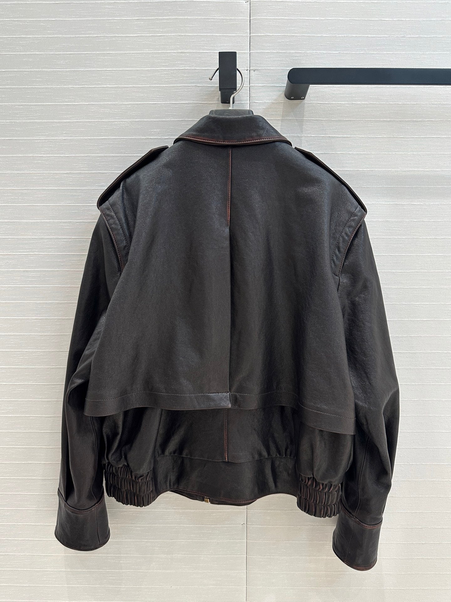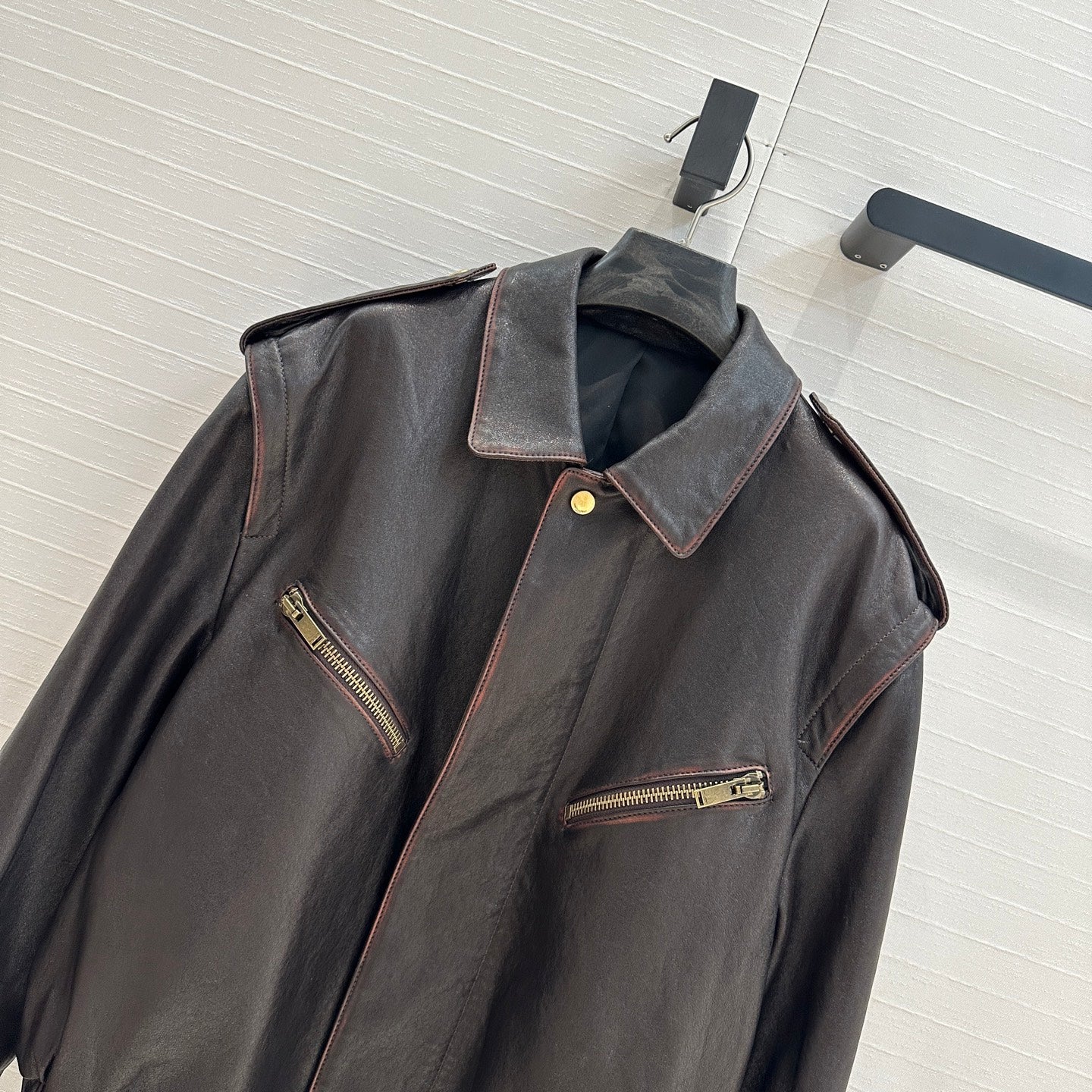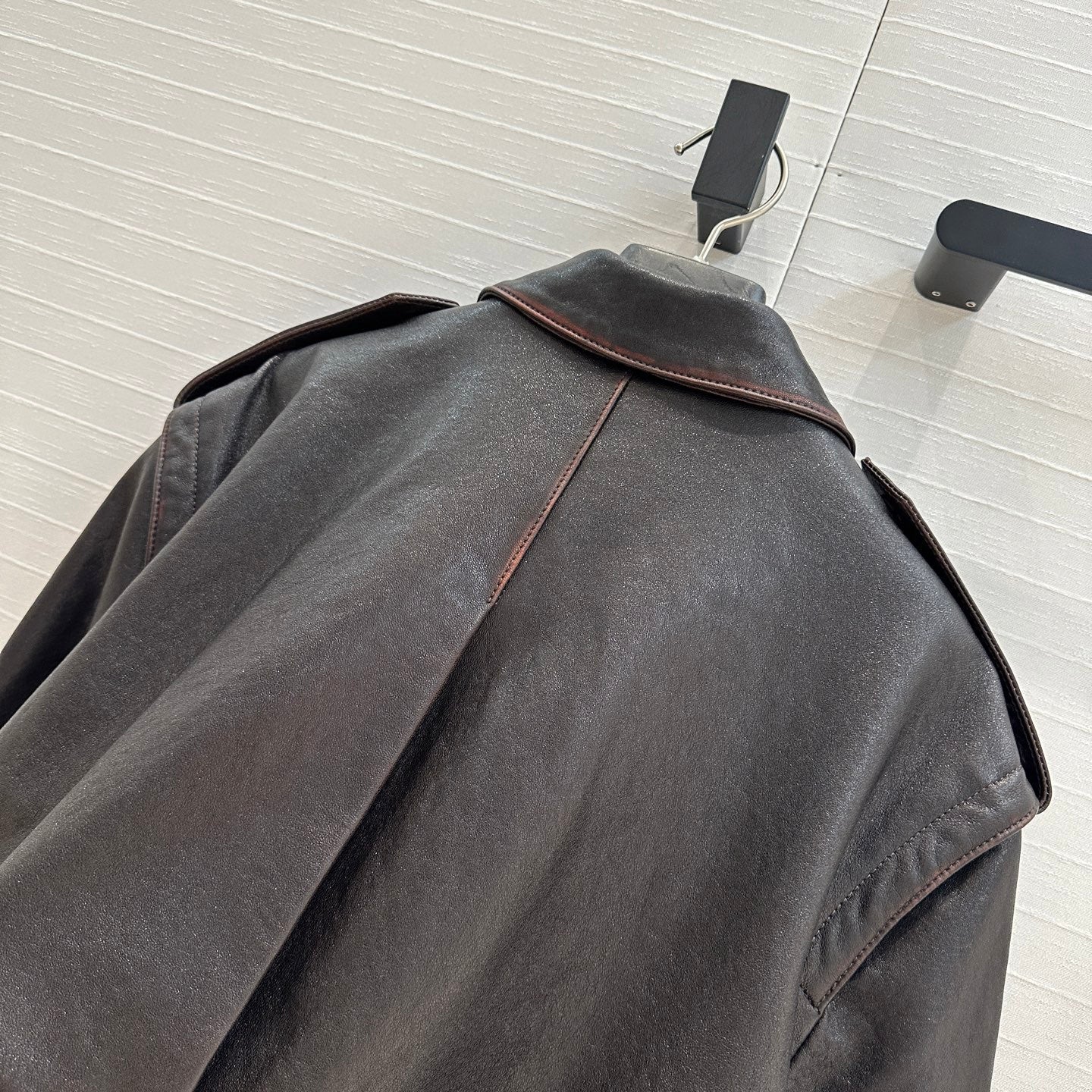 Giacca YSL con spalle ad angolo retto in pelle di agnello nera e marrone