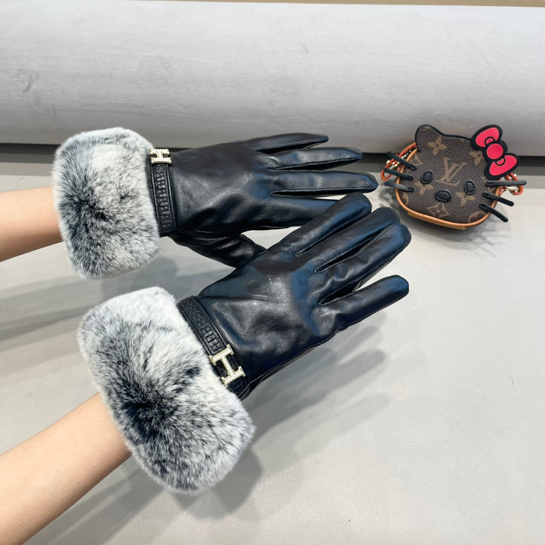 GUANTI IN PELLICCIA DI CONIGLIO E PELLE DI AGNELLO BIG H NERI 353541