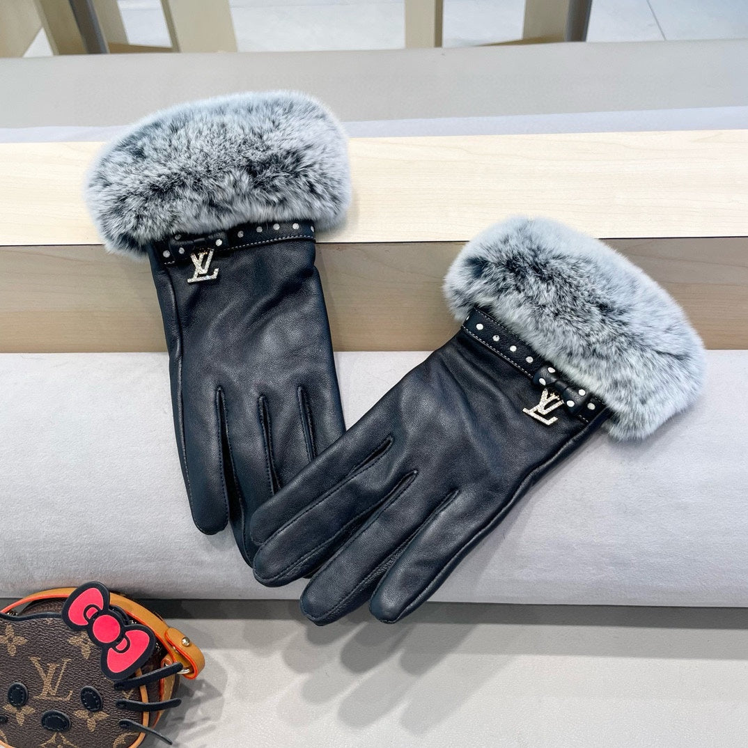 GUANTI LV IN PELLE DI AGNELLO NERA CON PELLICCIA DI CONIGLIO 462407