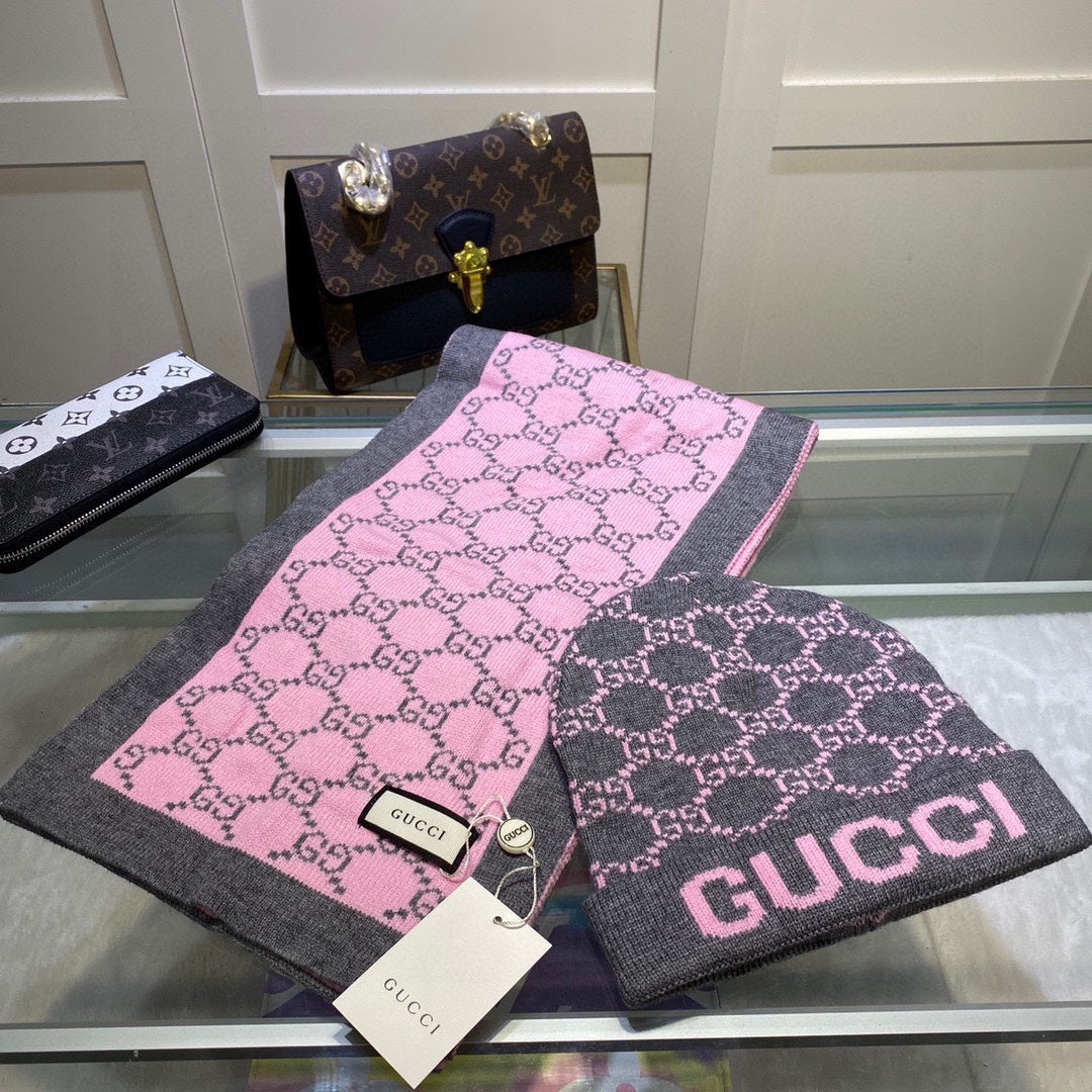 SET SCIARPA E CAPPELLO CLASSICI IN CASHMERE MONOGRAM ROSA CONTORNO 200522