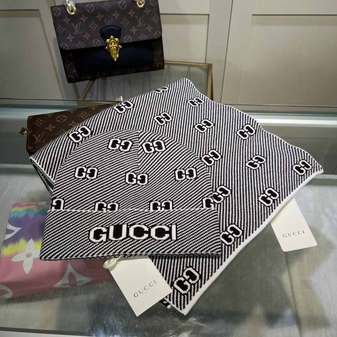 SET SCIARPA E CAPPELLO IN MISTO LANA E CASHMERE BIANCO NERO 946332