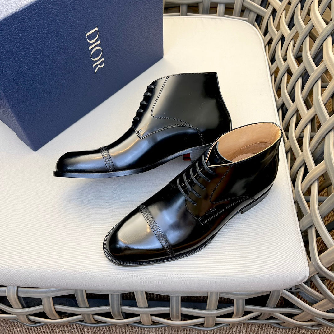 STIVALETTO CON LACCI CD HOMME IN PELLE DI VITELLO GOFFRATA NERA