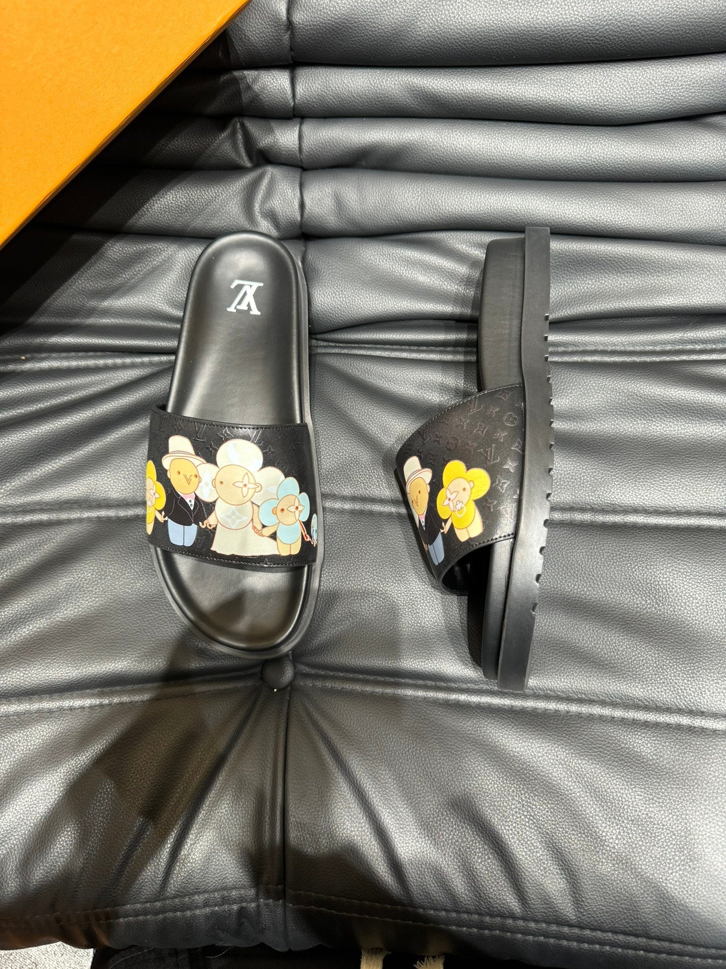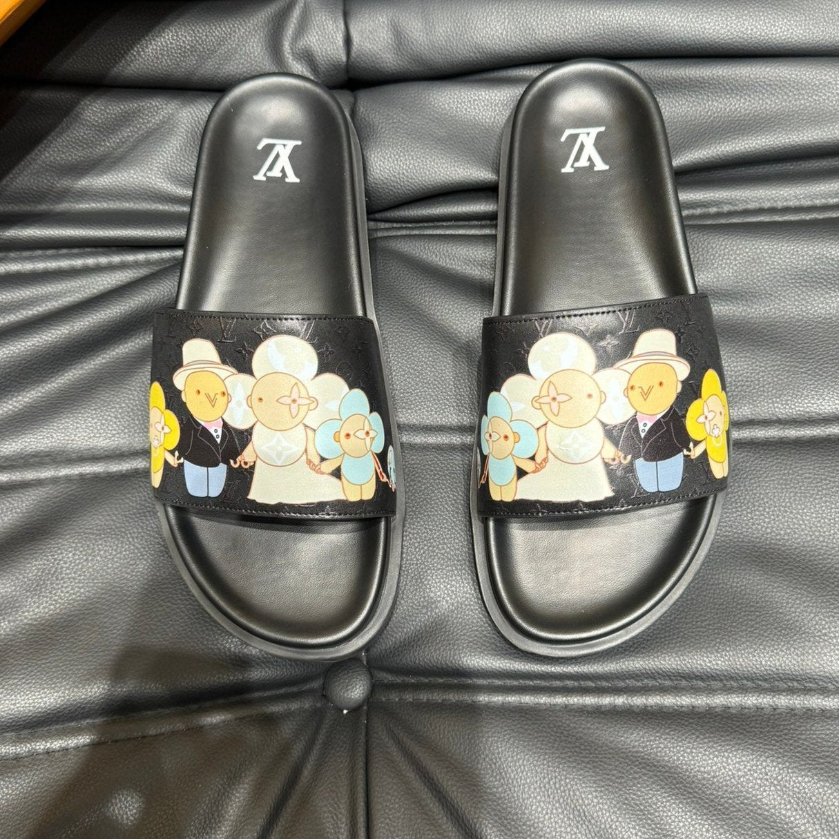 PANTOFOLE LV IN PELLE DI VITELLO MONOGRAMMA NERA