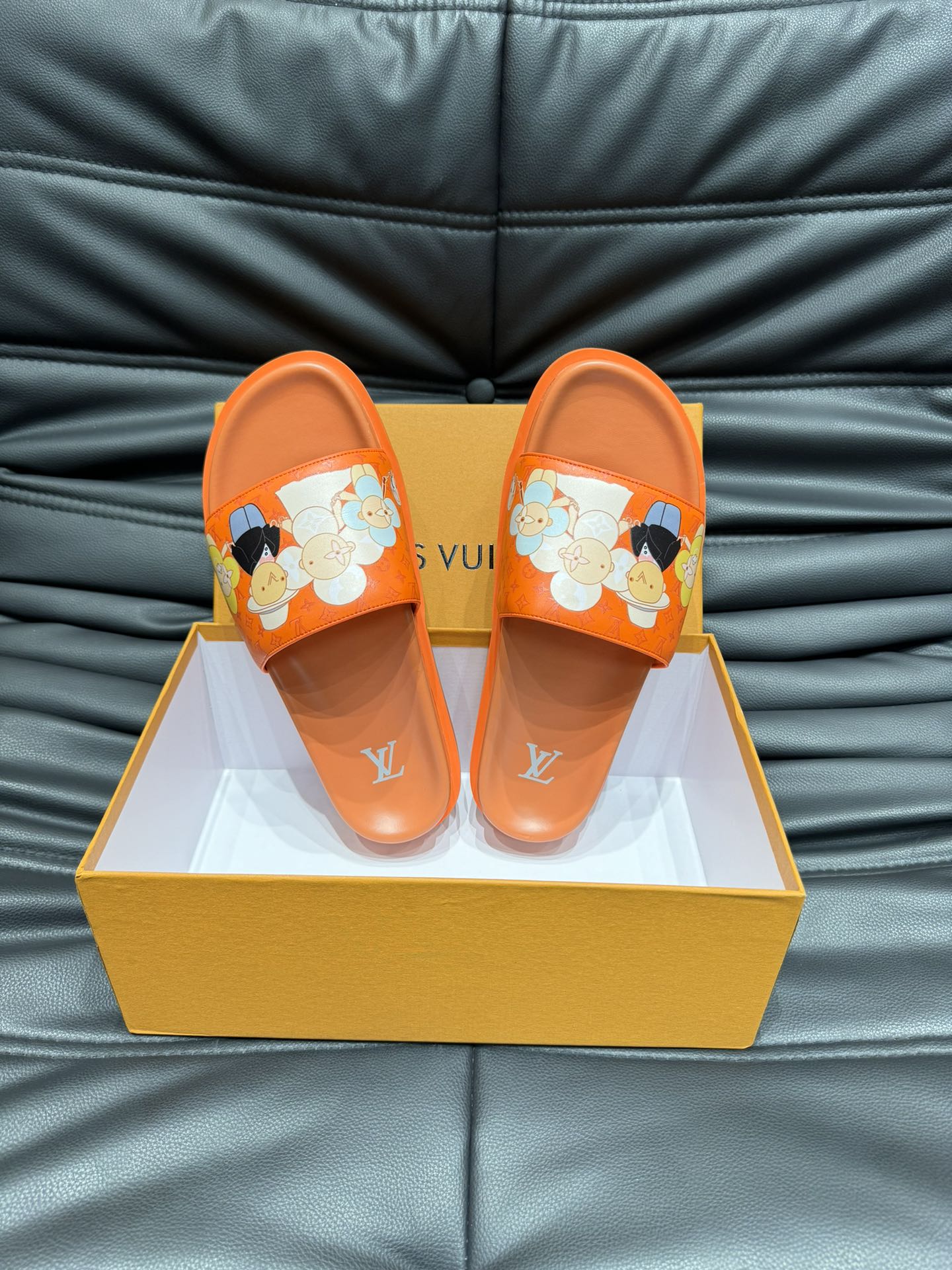PANTOFOLE LV IN PELLE DI VITELLO MONOGRAMMA ARANCIONE CAROTA