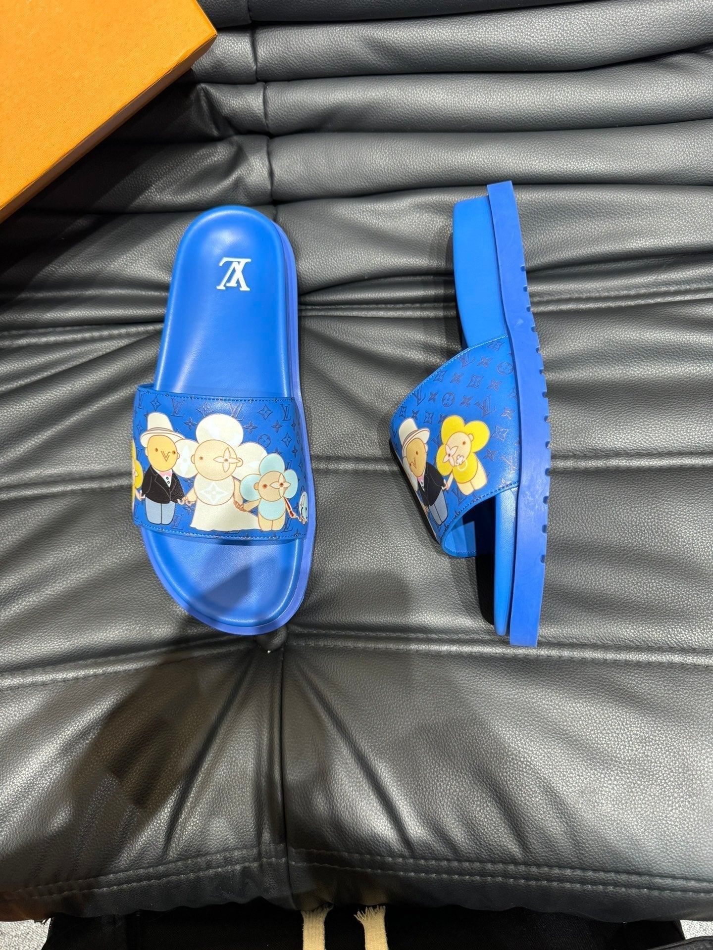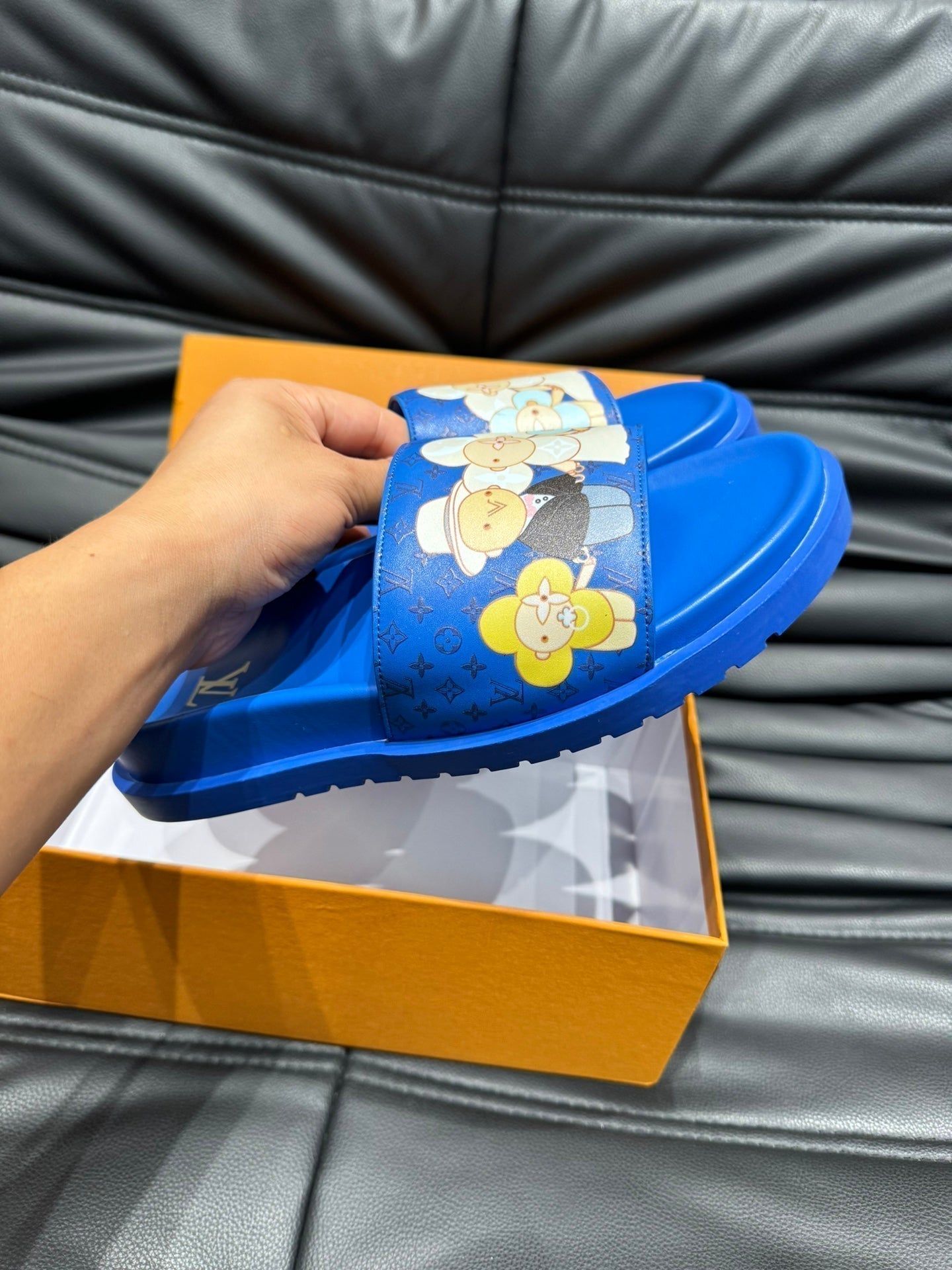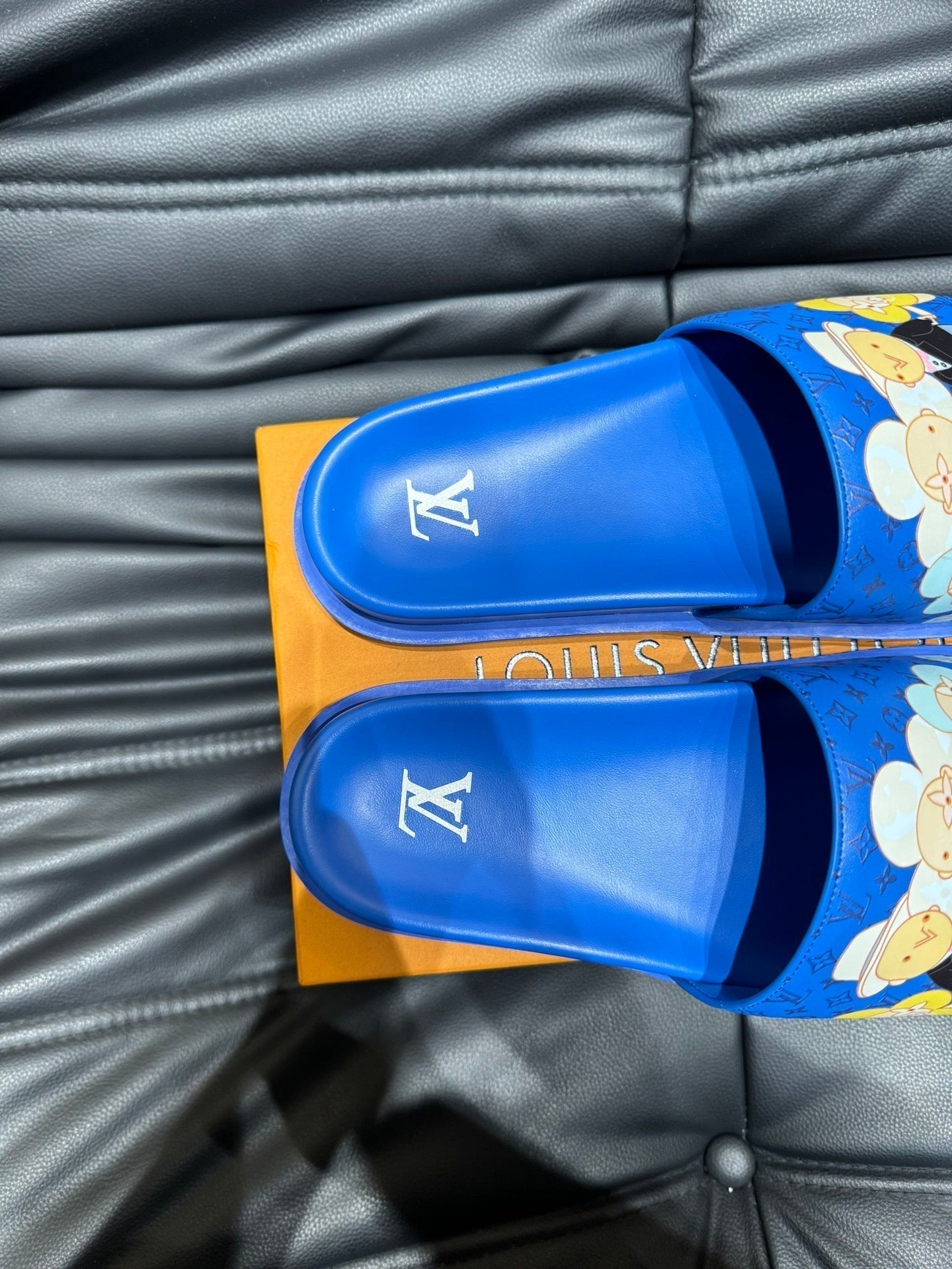 PANTOFOLE LV IN PELLE DI VITELLO MONOGRAM BLU COBALTO