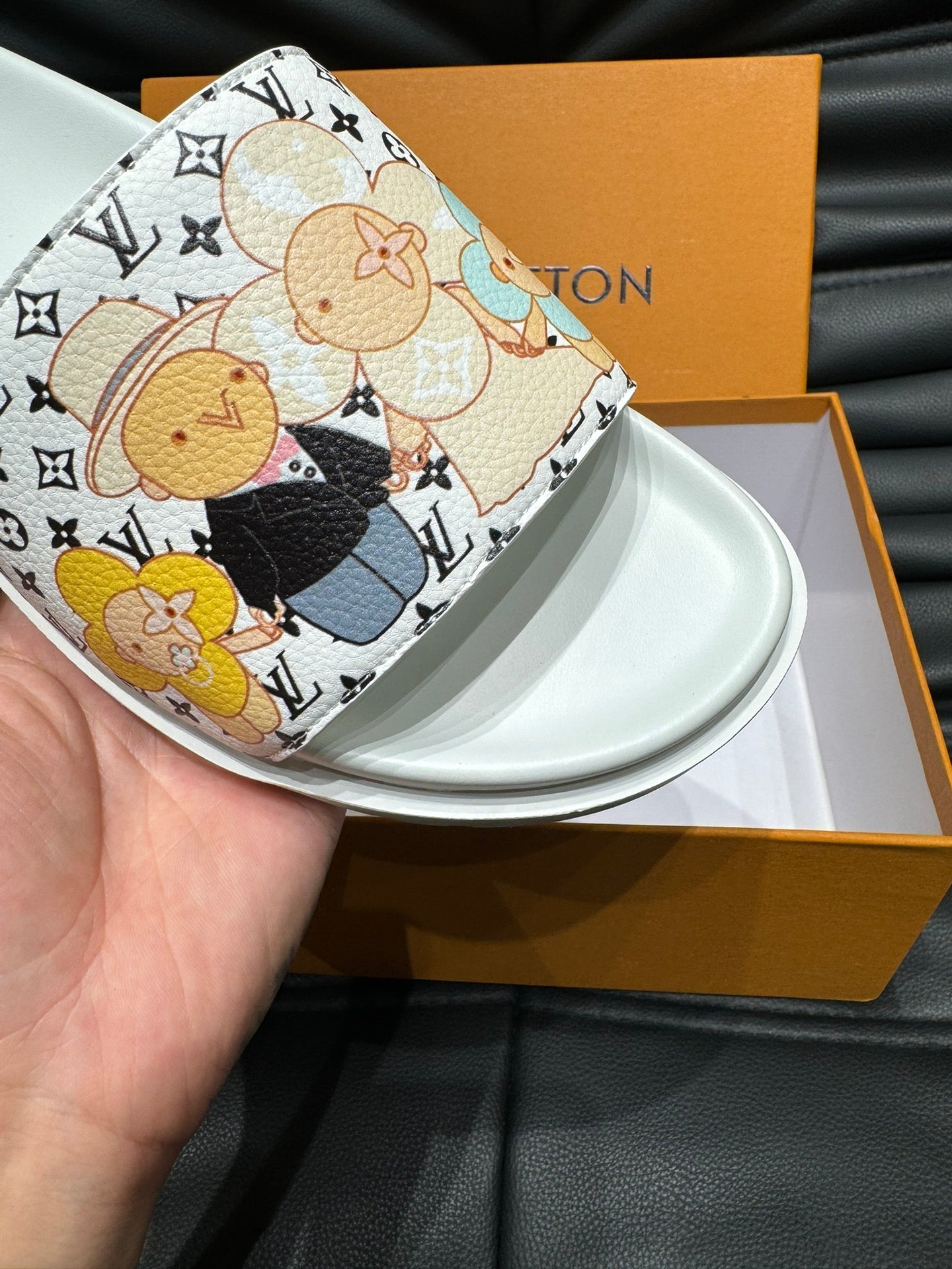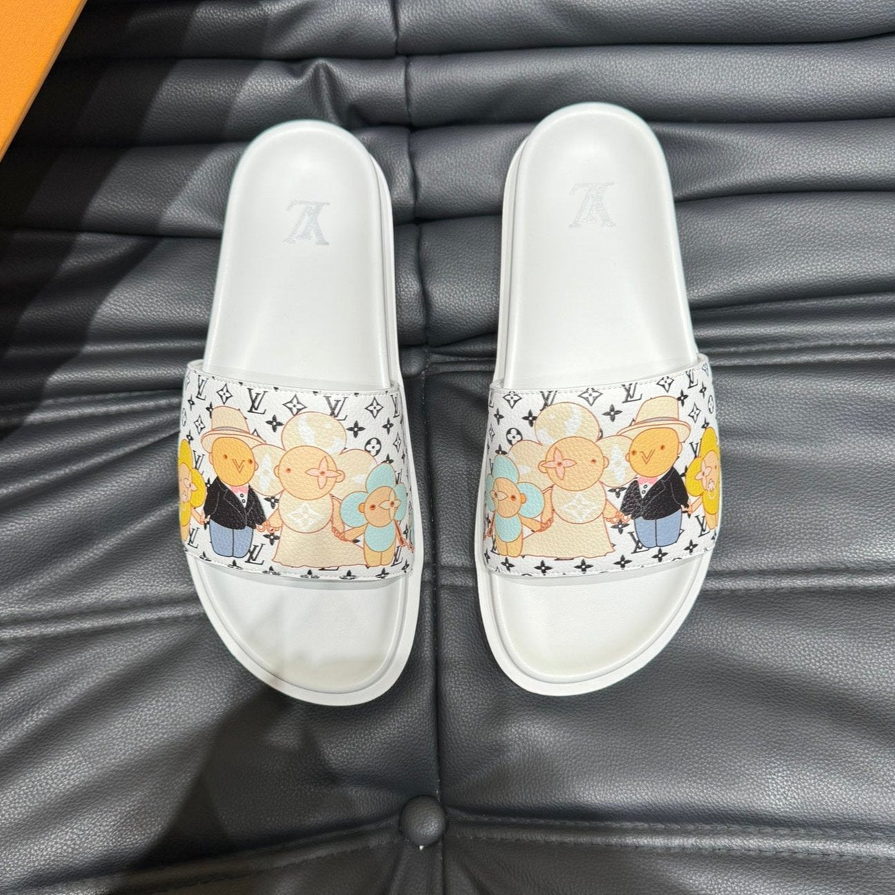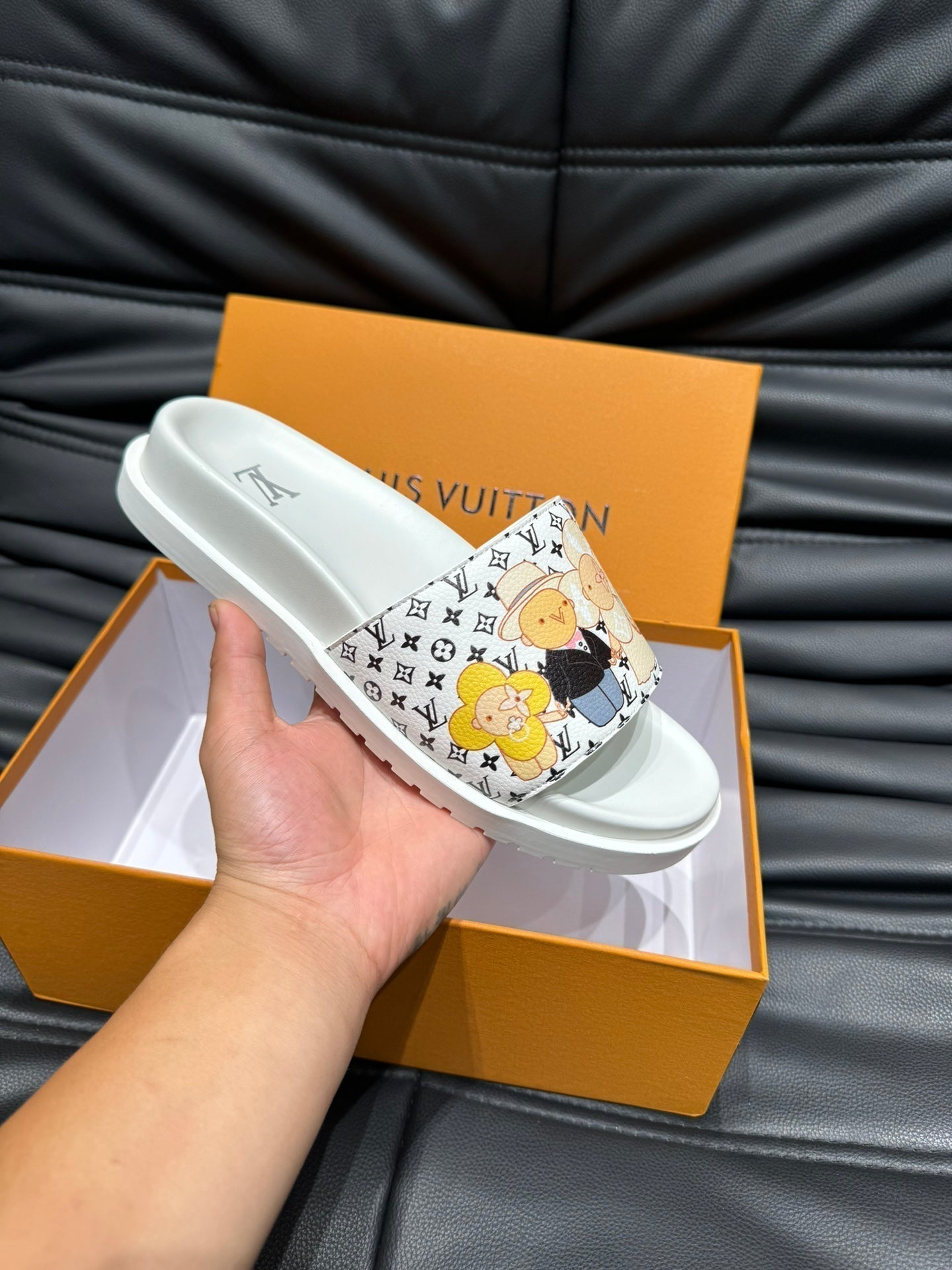 PANTOFOLE LV IN PELLE DI VITELLO MONOGRAMMA BIANCA