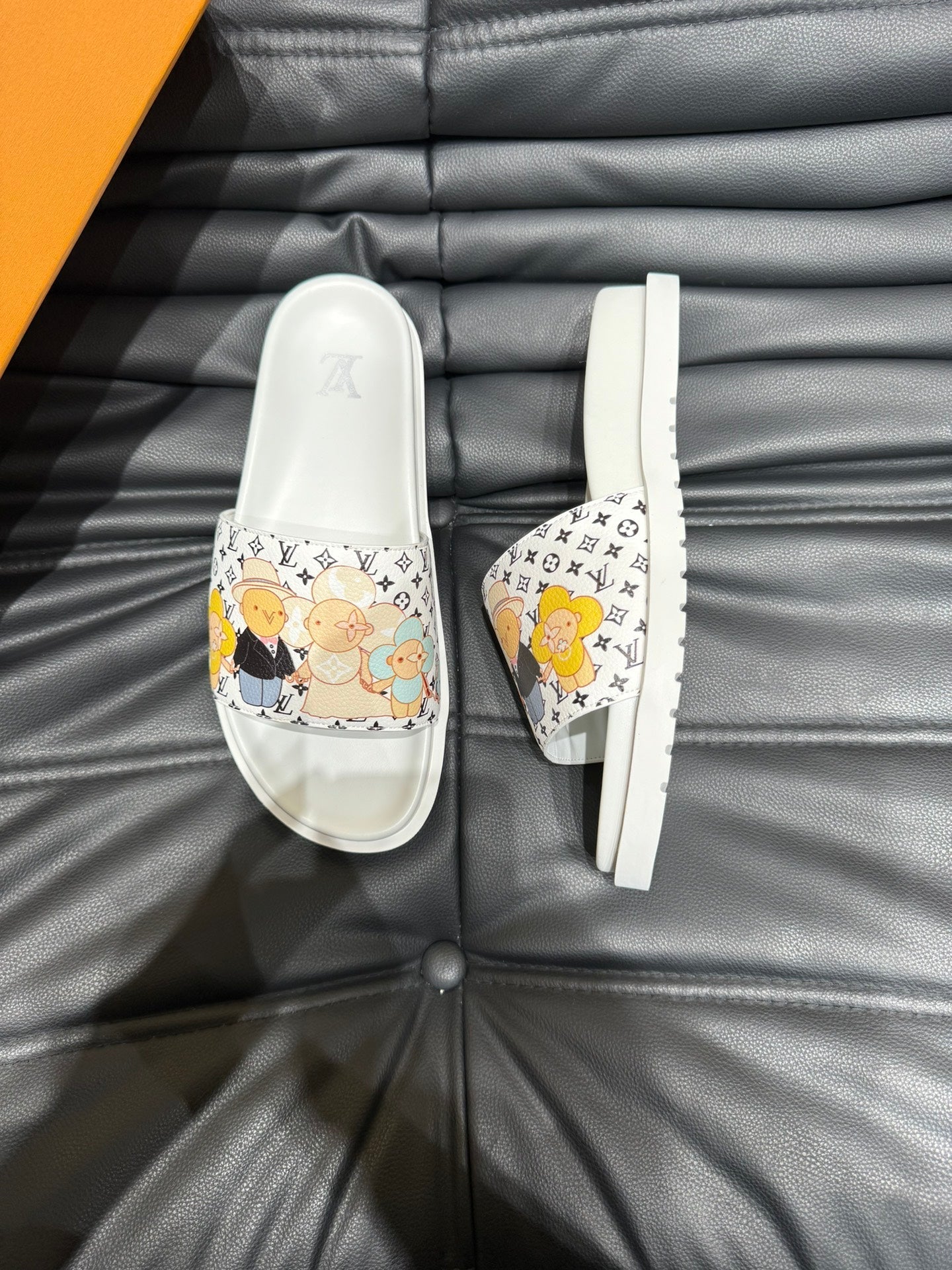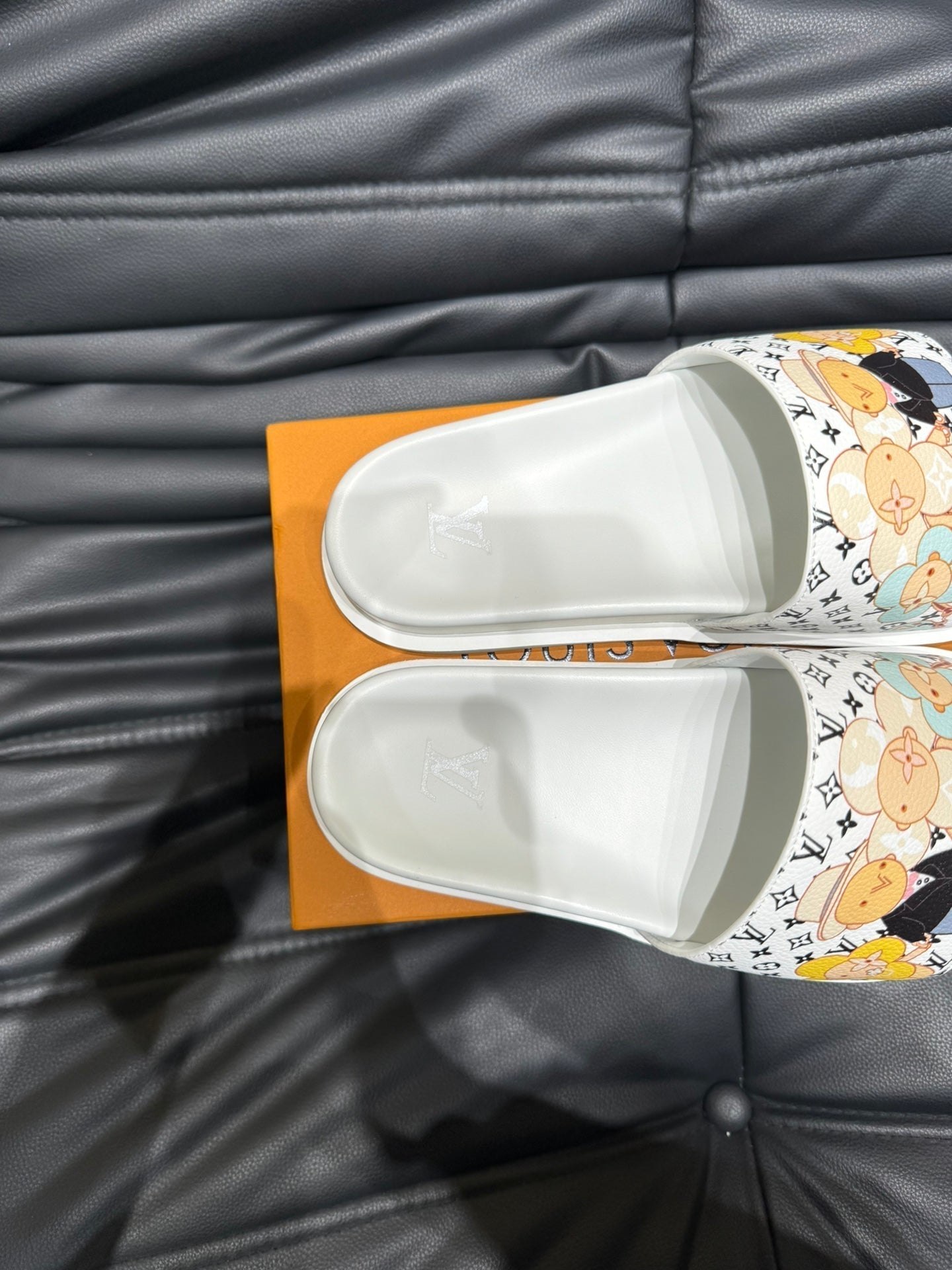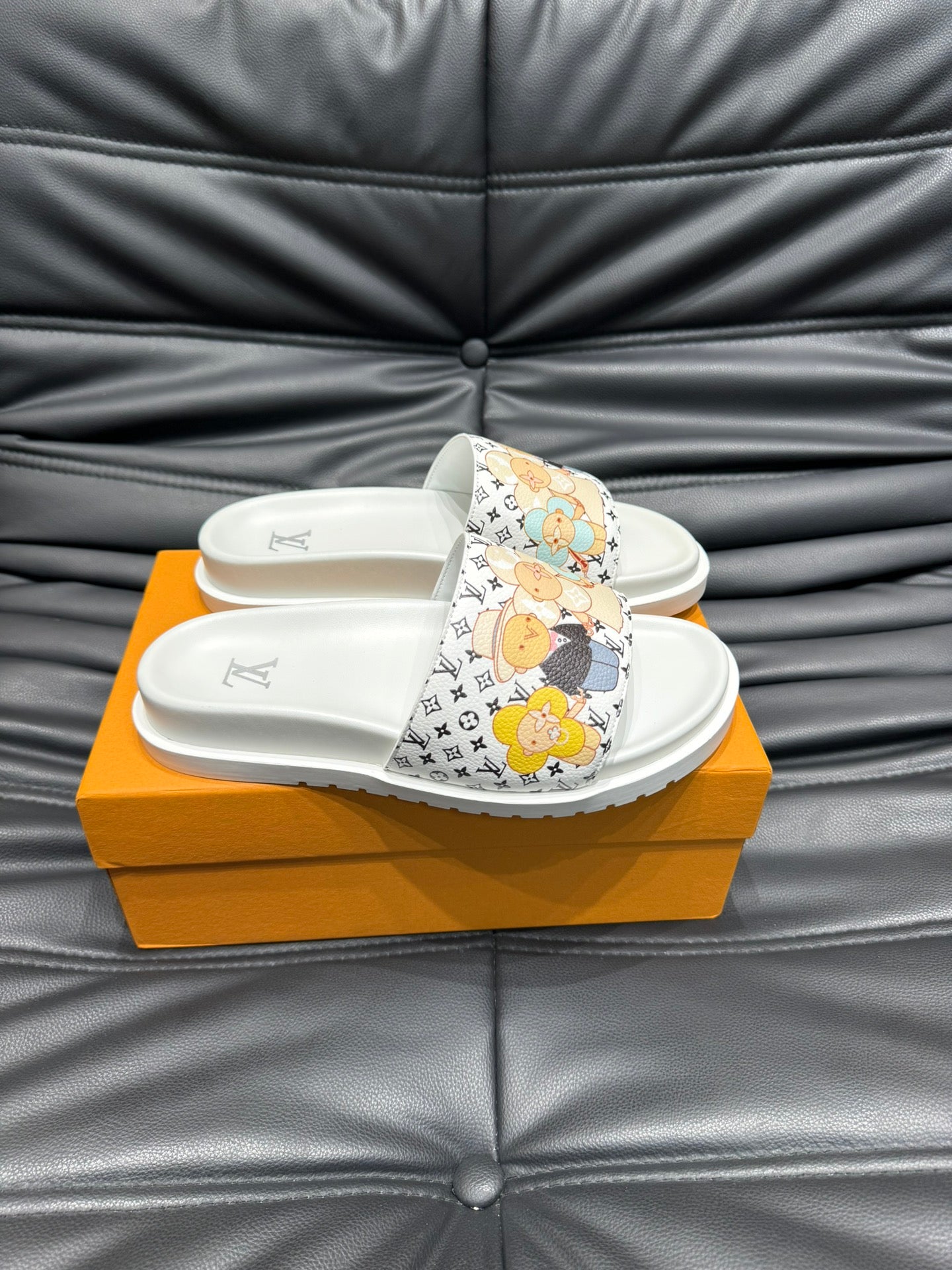 PANTOFOLE LV IN PELLE DI VITELLO MONOGRAMMA BIANCA