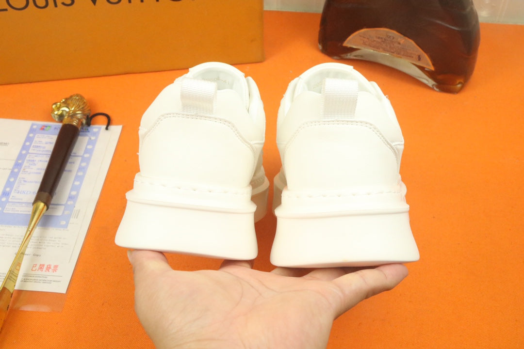 LV TRAINER IN PELLE DI VITELLO BIANCA E LOGO GRIGIO