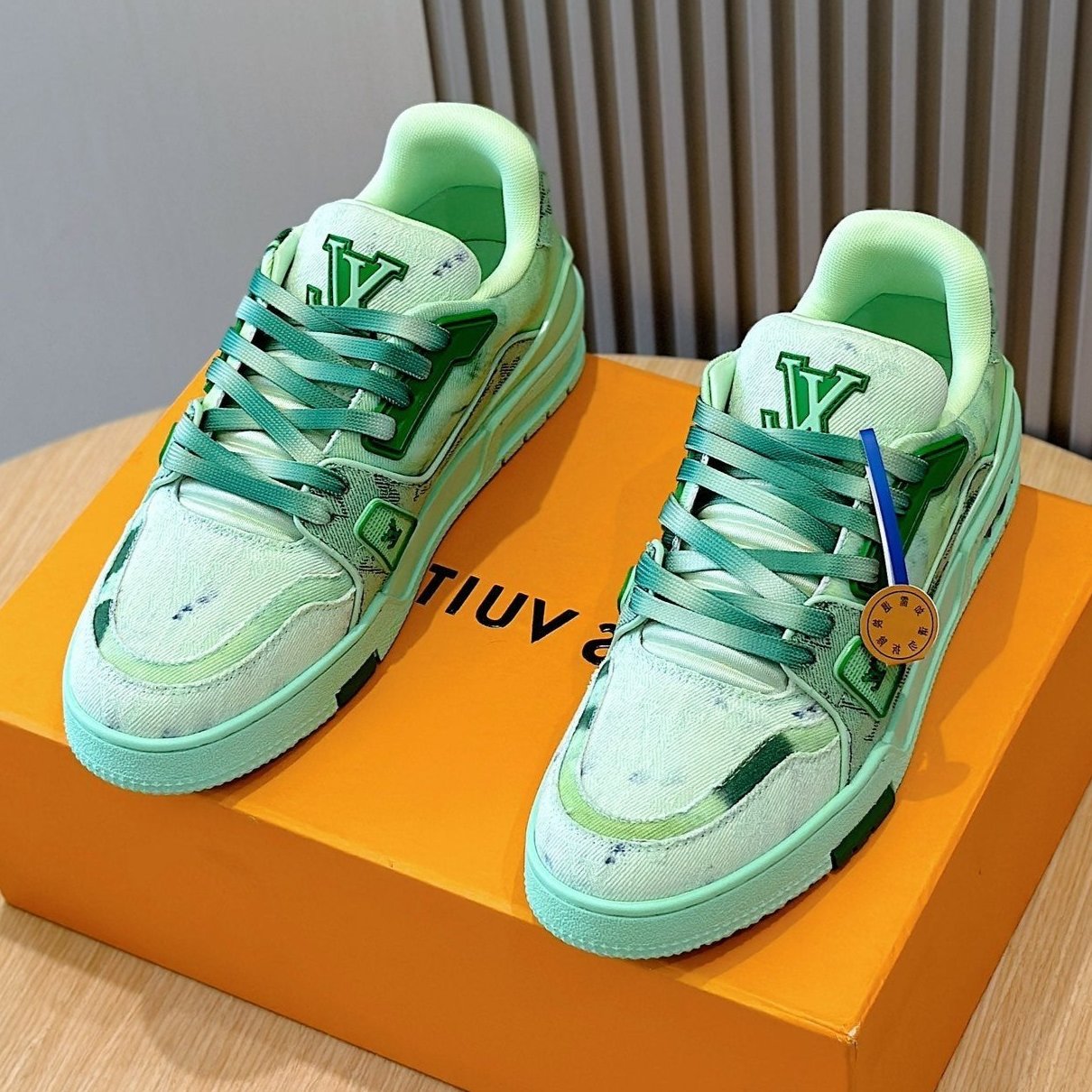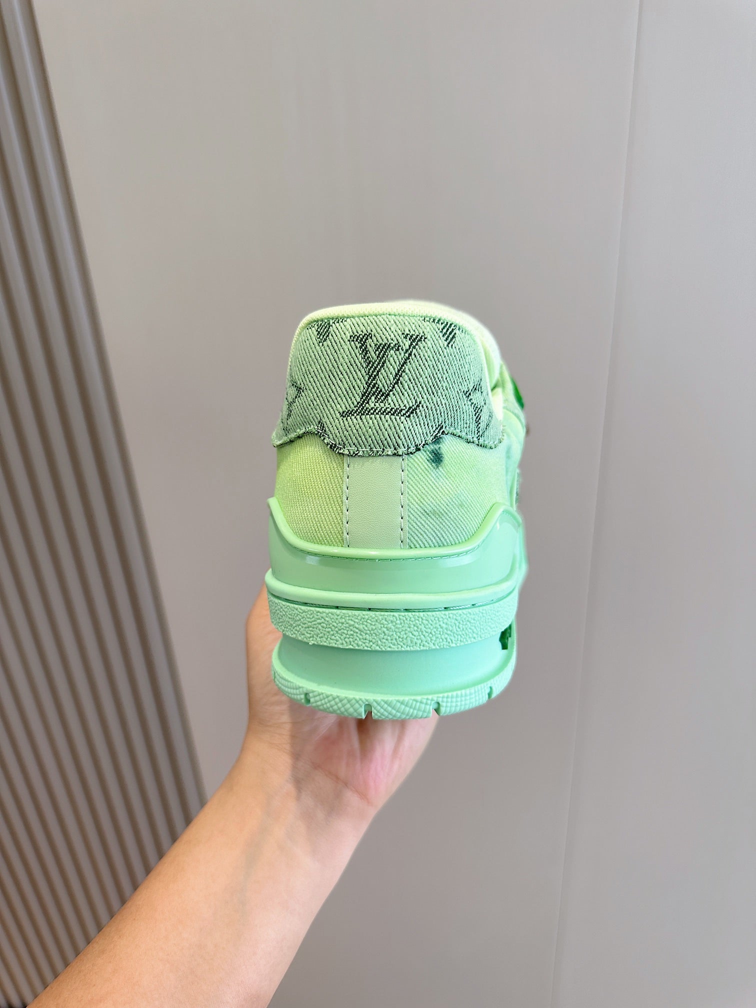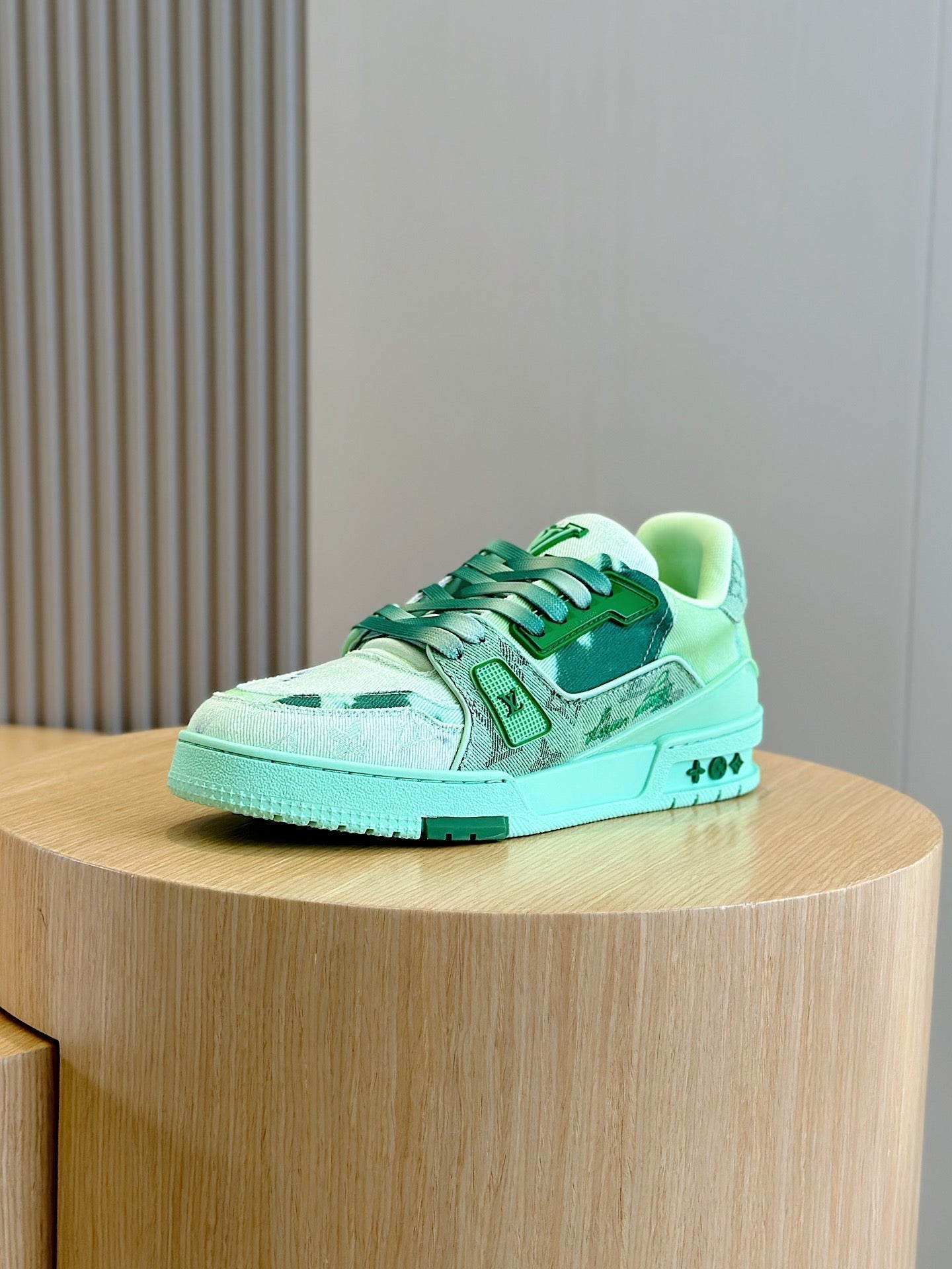 SNEAKER LV TRAINER VERDE CHIARO IN DENIM E PELLE DI VITELLO CON MONOGRAMMA