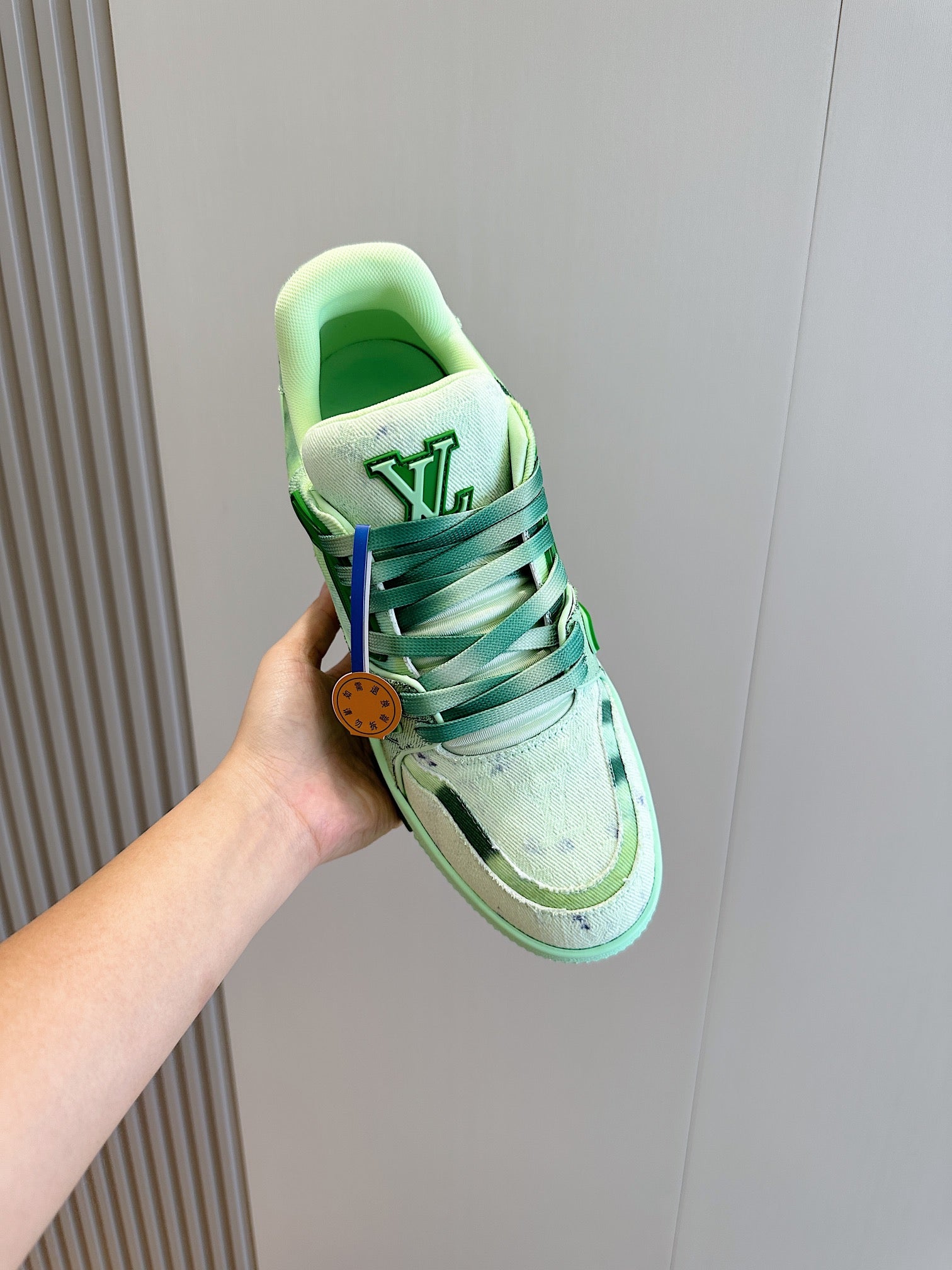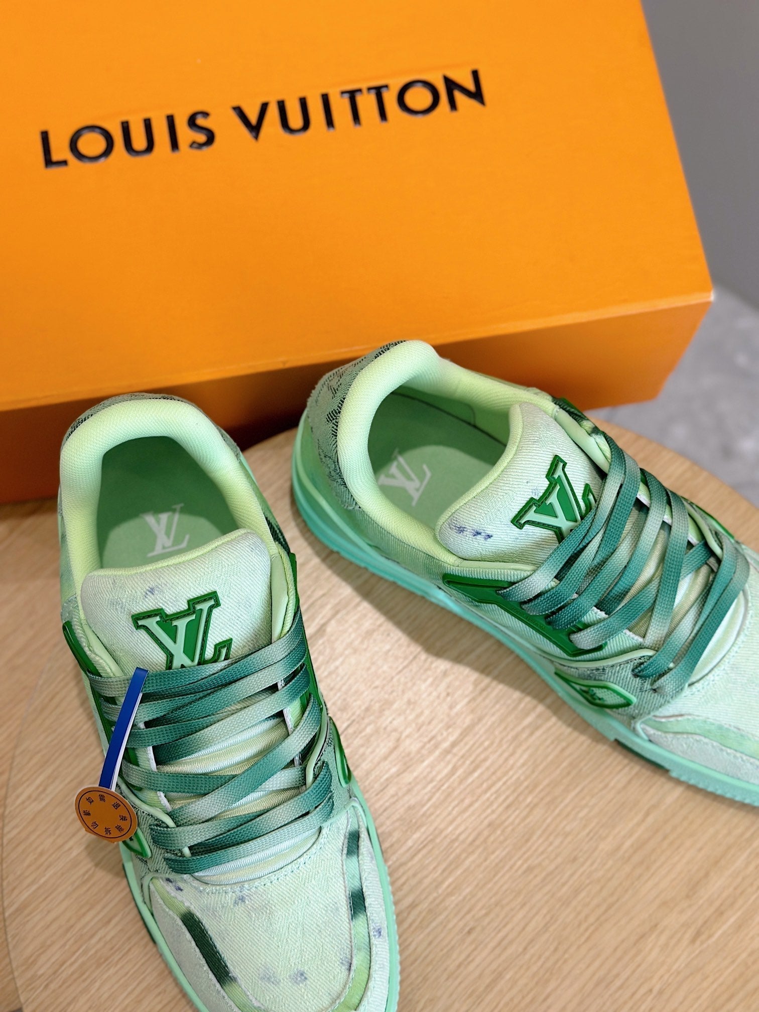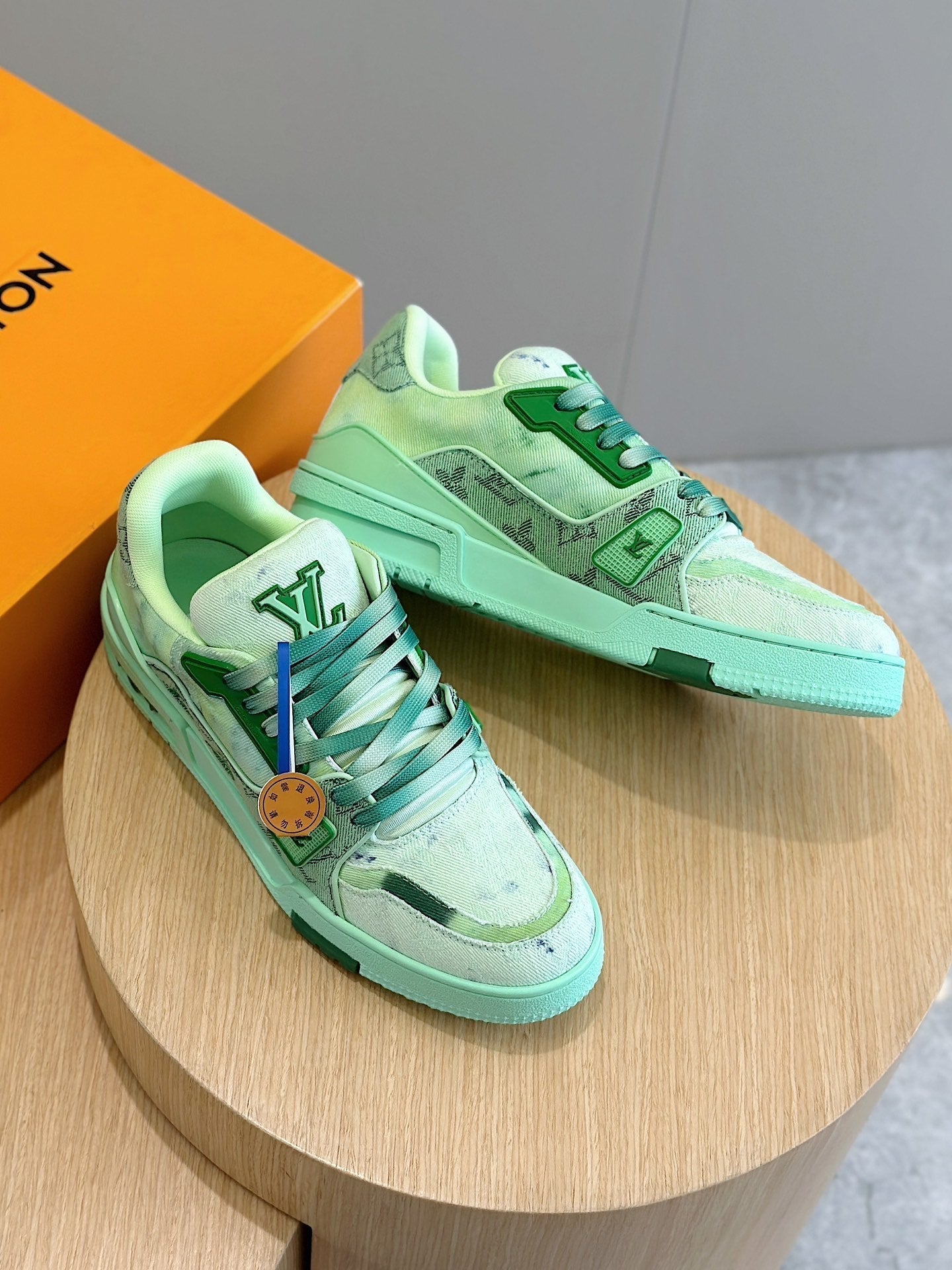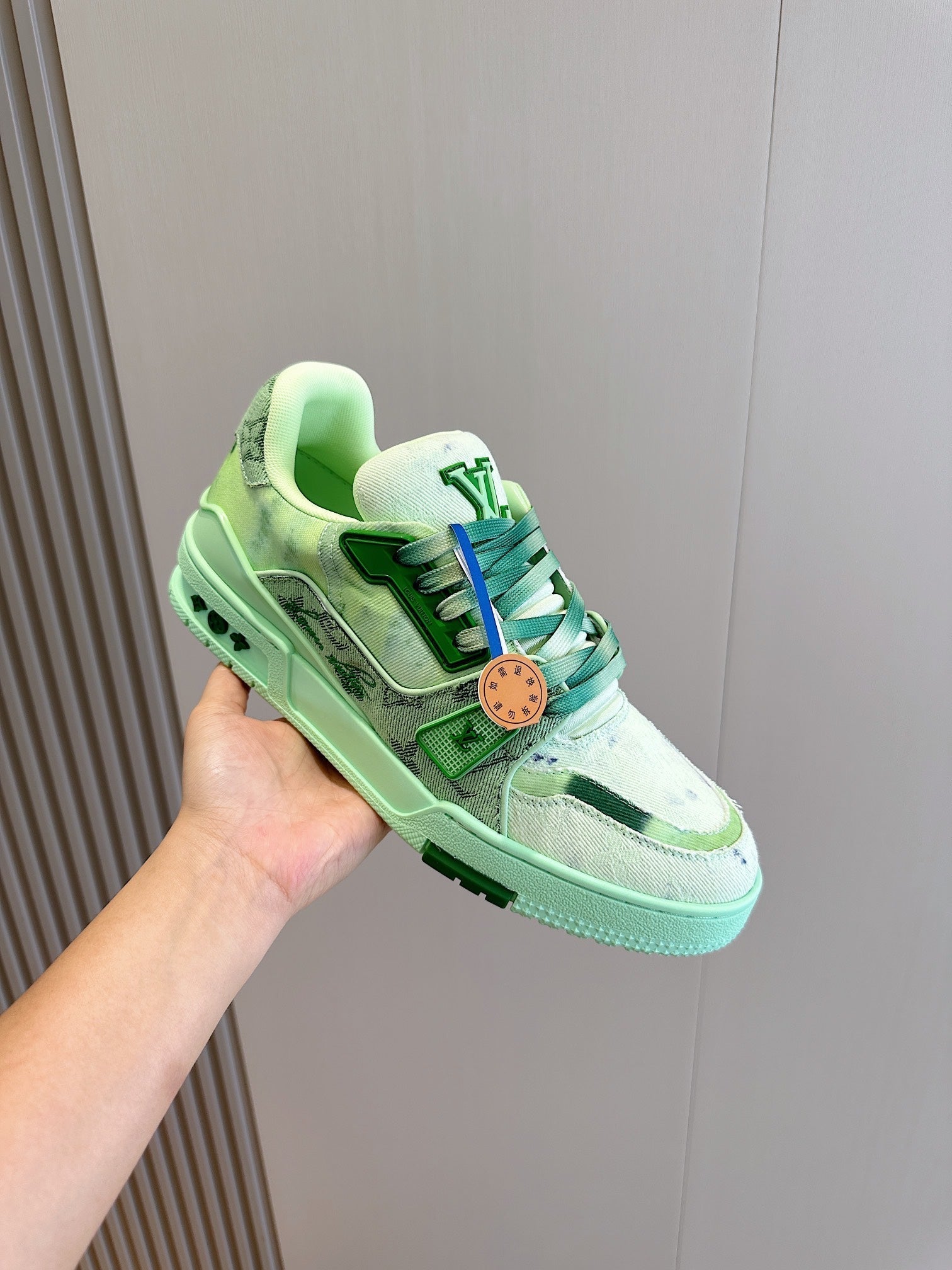 SNEAKER LV TRAINER VERDE CHIARO IN DENIM E PELLE DI VITELLO CON MONOGRAMMA