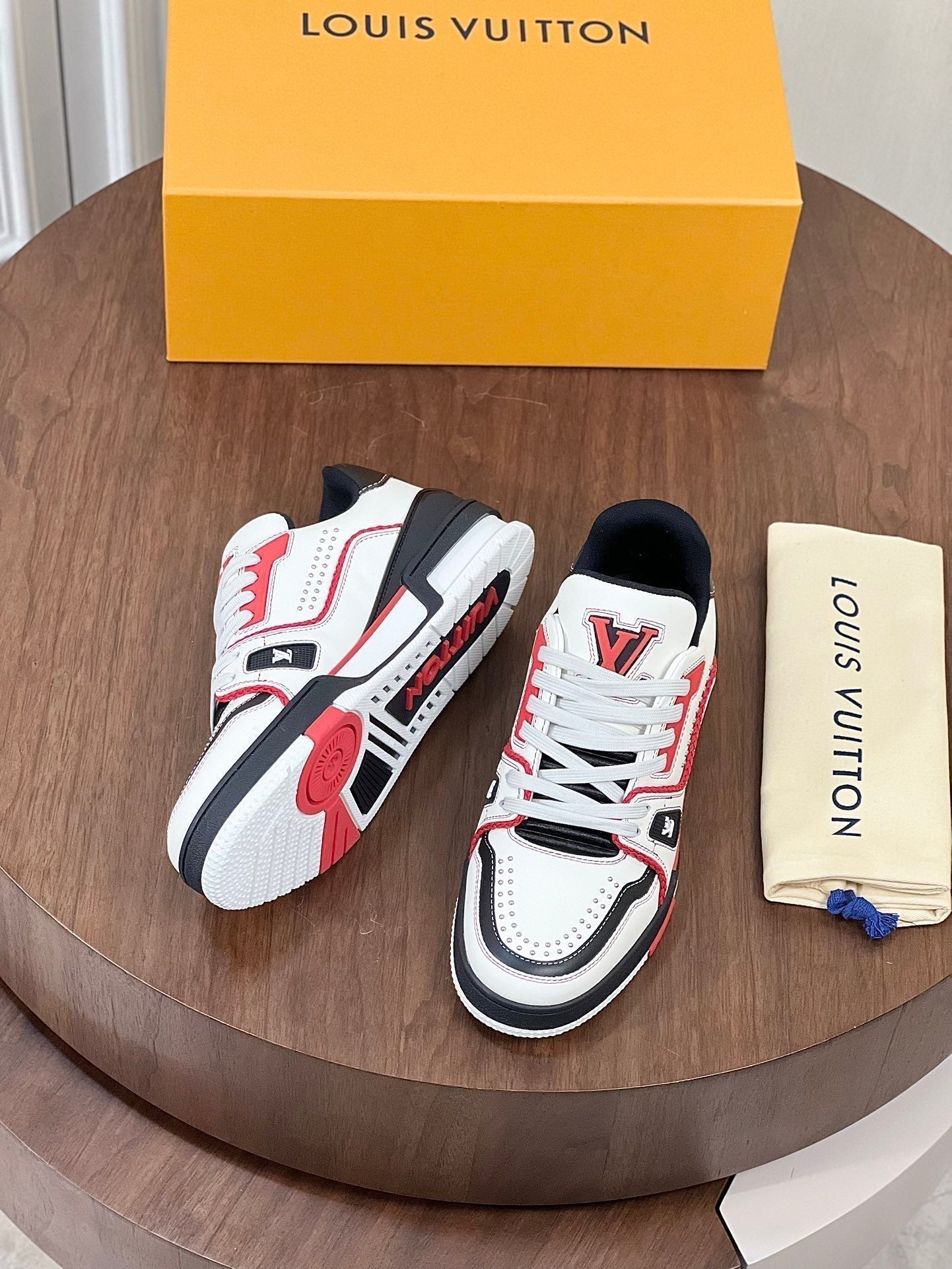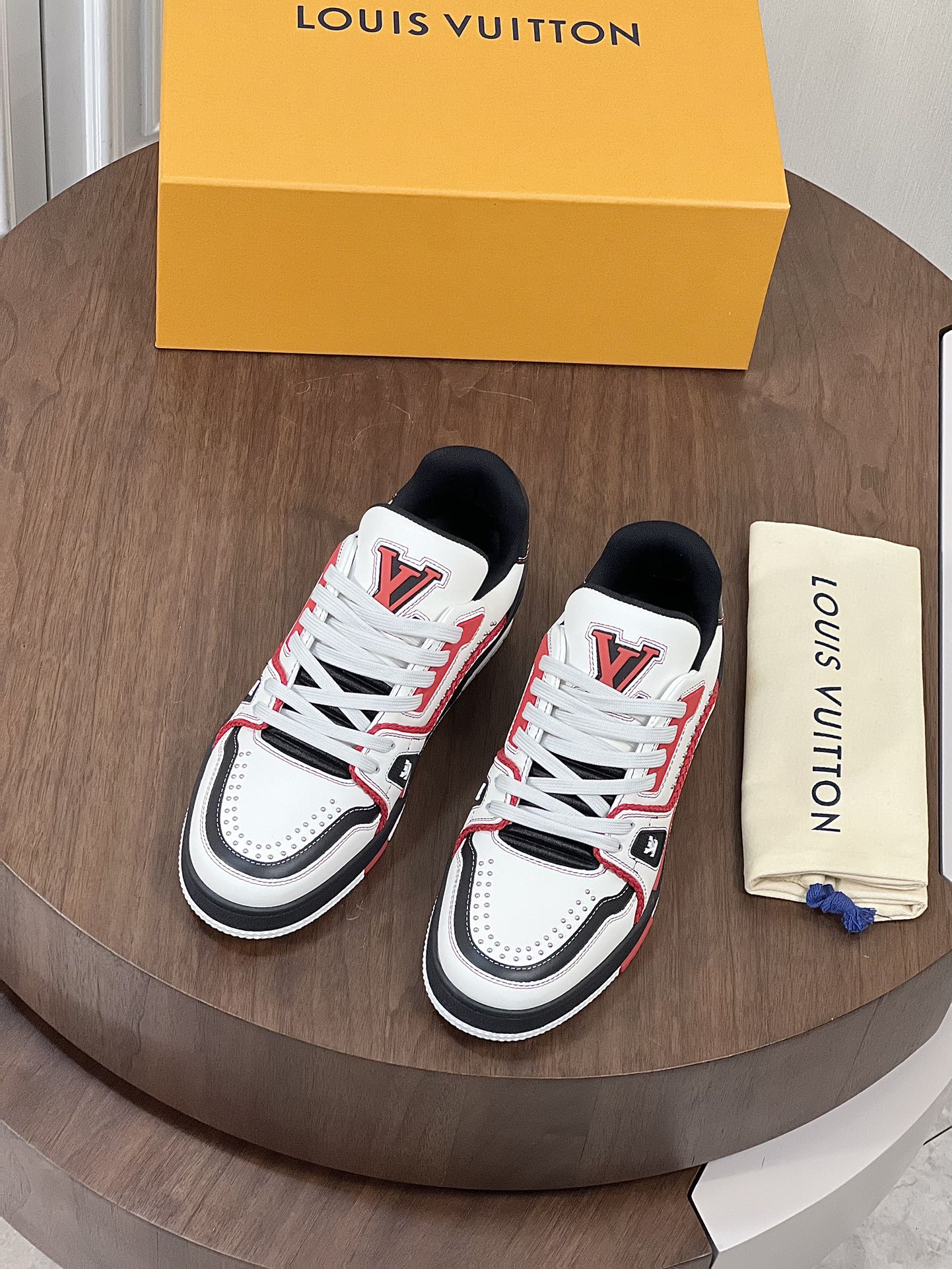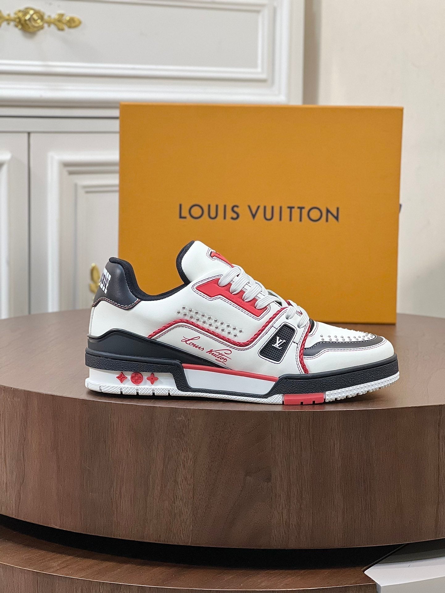 LV TRAINER BIANCO MIX NERO E ROSSO MONOGRAMMA PELLE DI VITELLO