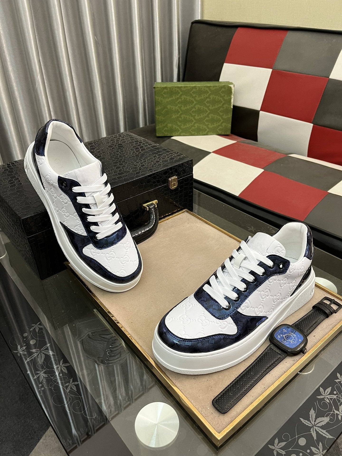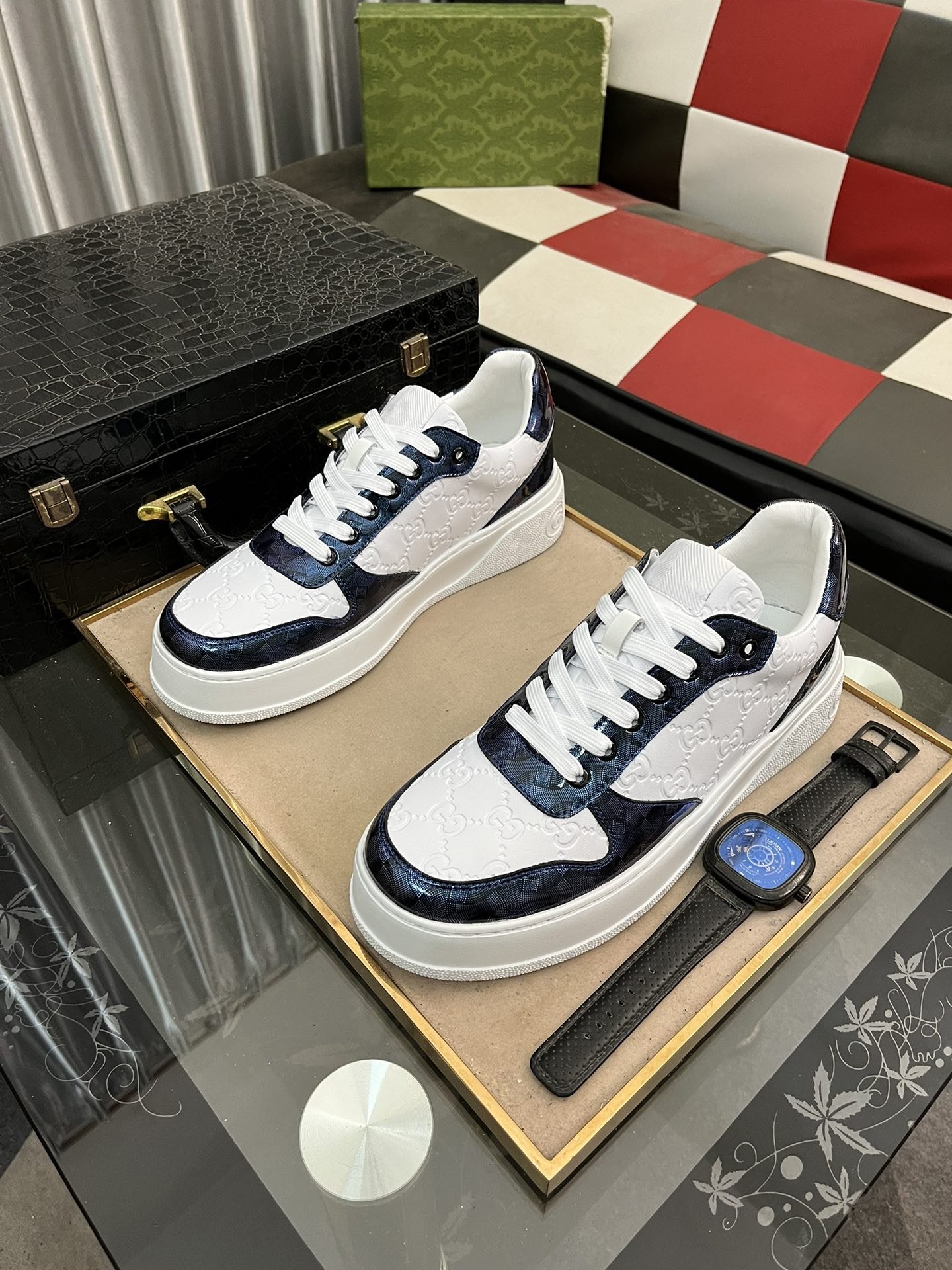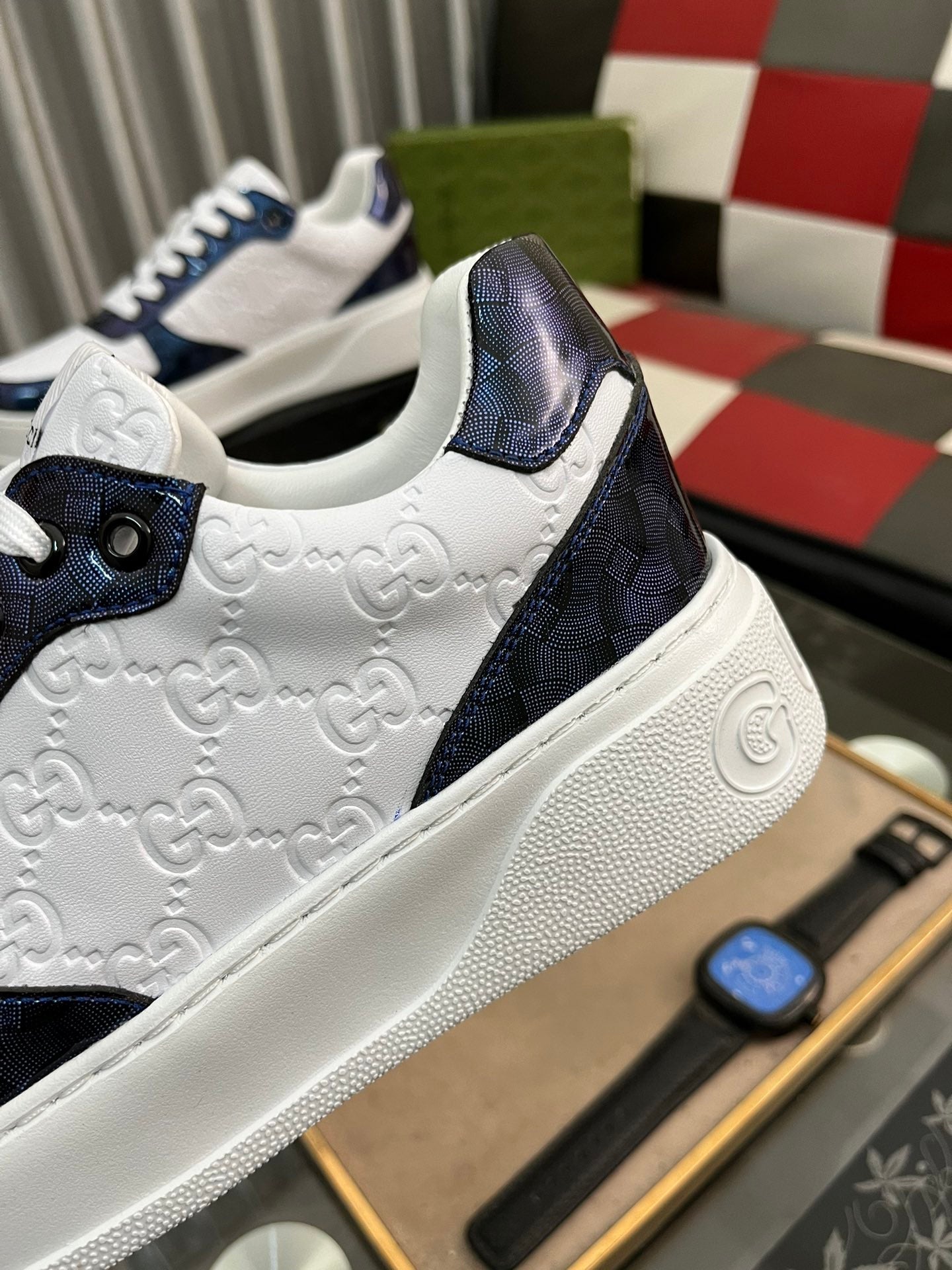 SNEAKERS GG IN PELLE DI VACCHETTA BLU E BIANCA GOFFRATA