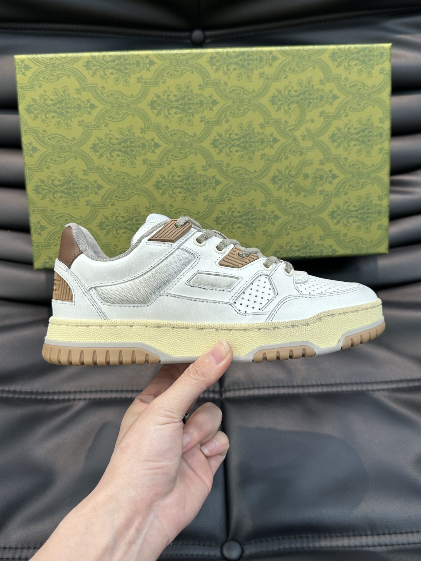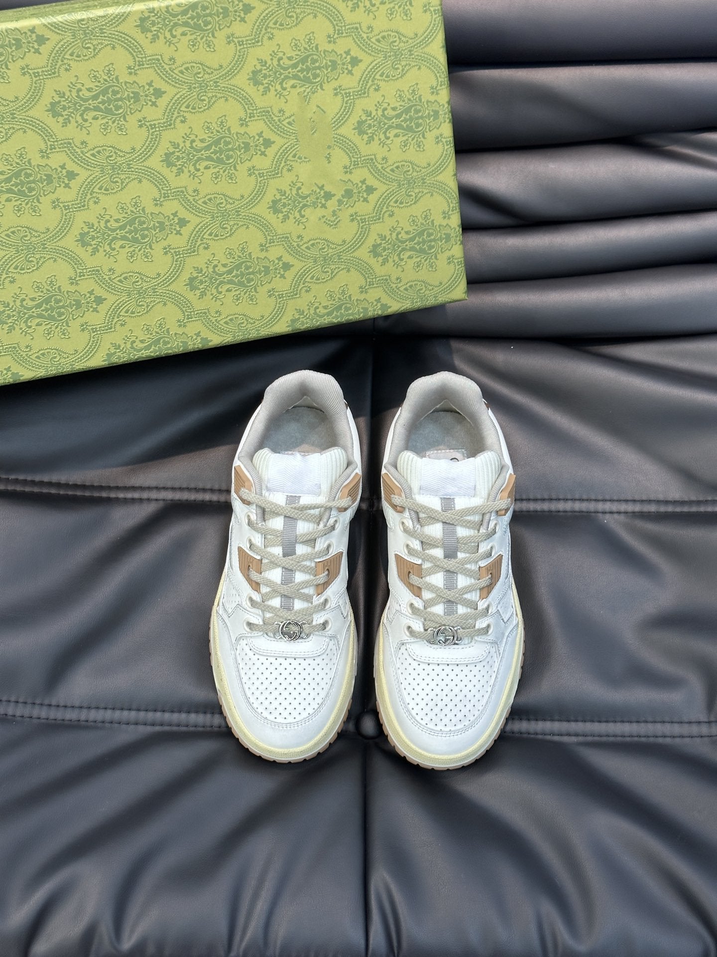 • Tomaia: l'abile integrazione dei dettagli del logo del marchio, come l'accessorio Doppia G e le lettere G intrecciate, è un sottile omaggio alla tradizione del design del marchio.