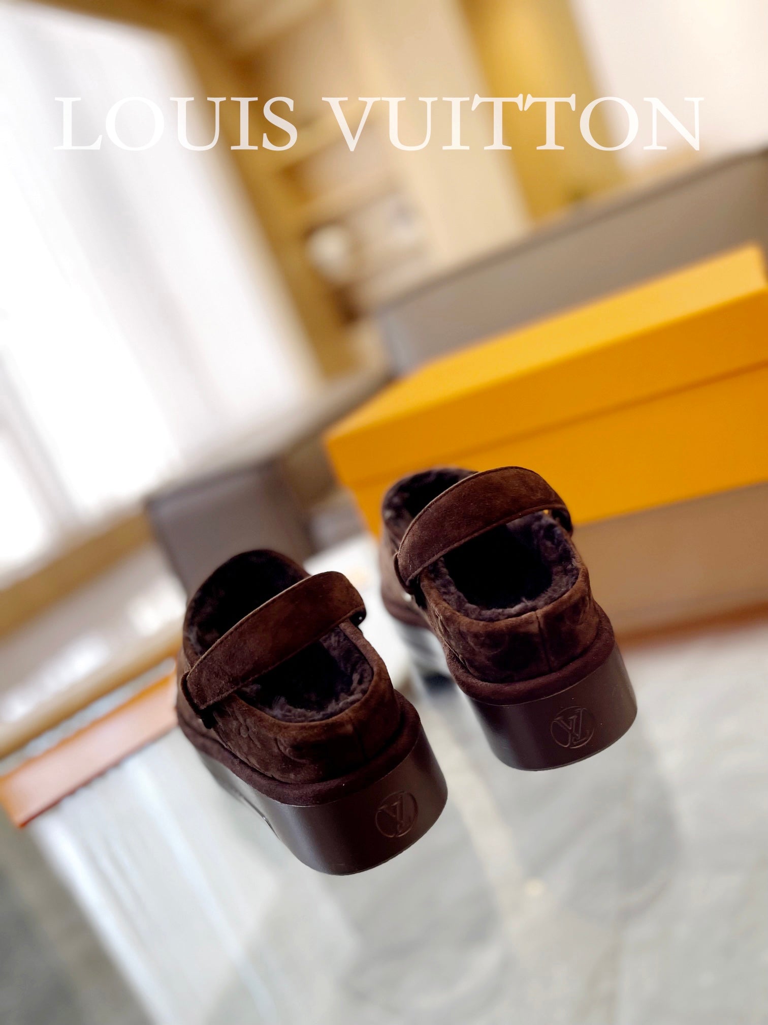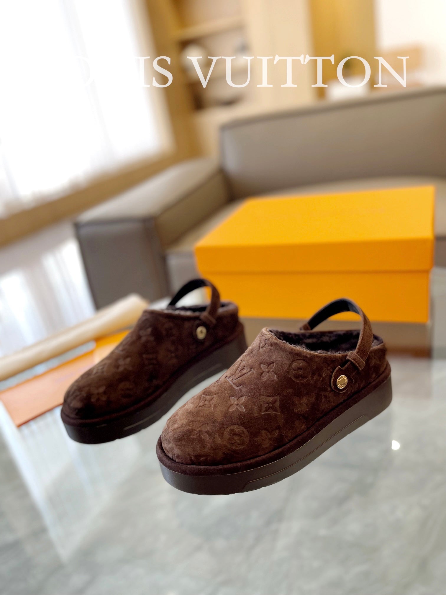 Zoccoli con piattaforma LV Aspen in pelle scamosciata monogrammata marrone noce