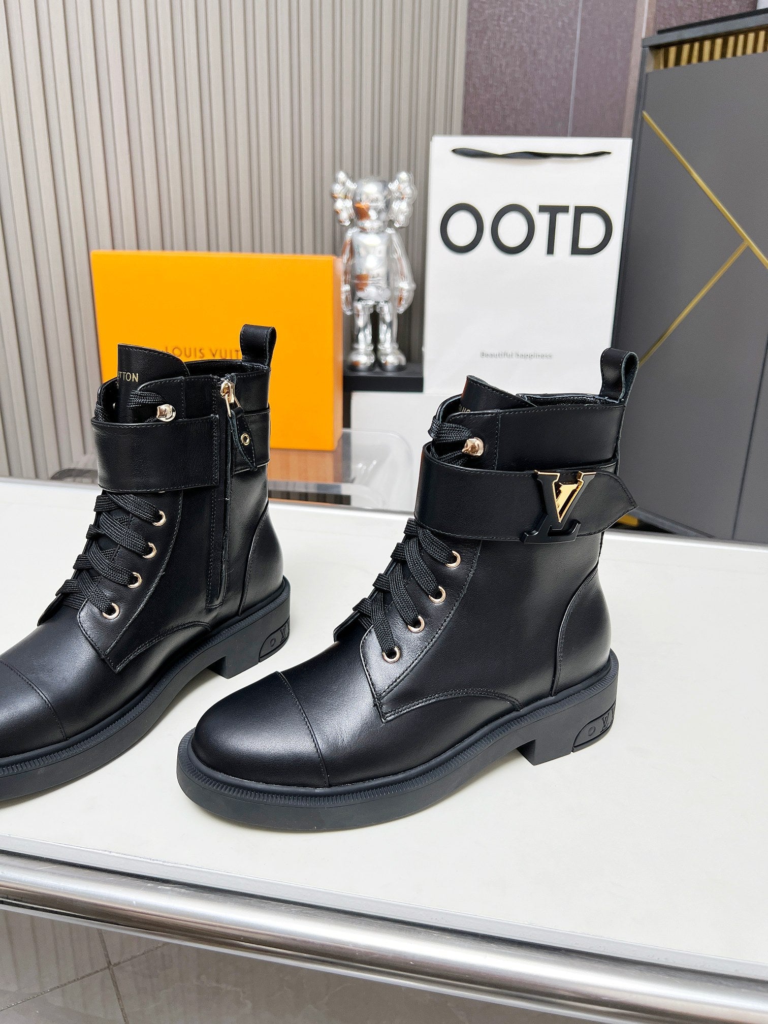 Stivali LV Citizen in pelle di vacchetta nera liscia