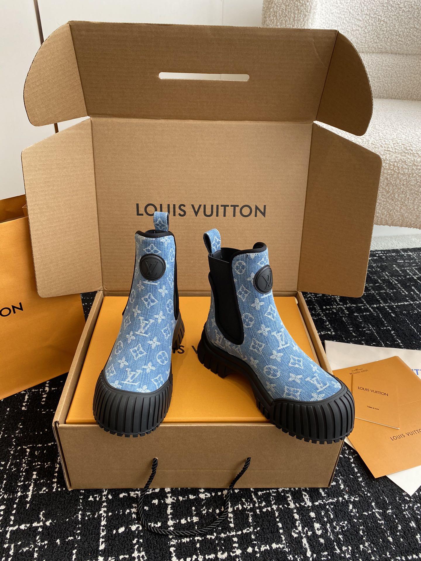 Stivaletti bassi LV Ruby in tessuto jacquard monogramma azzurro