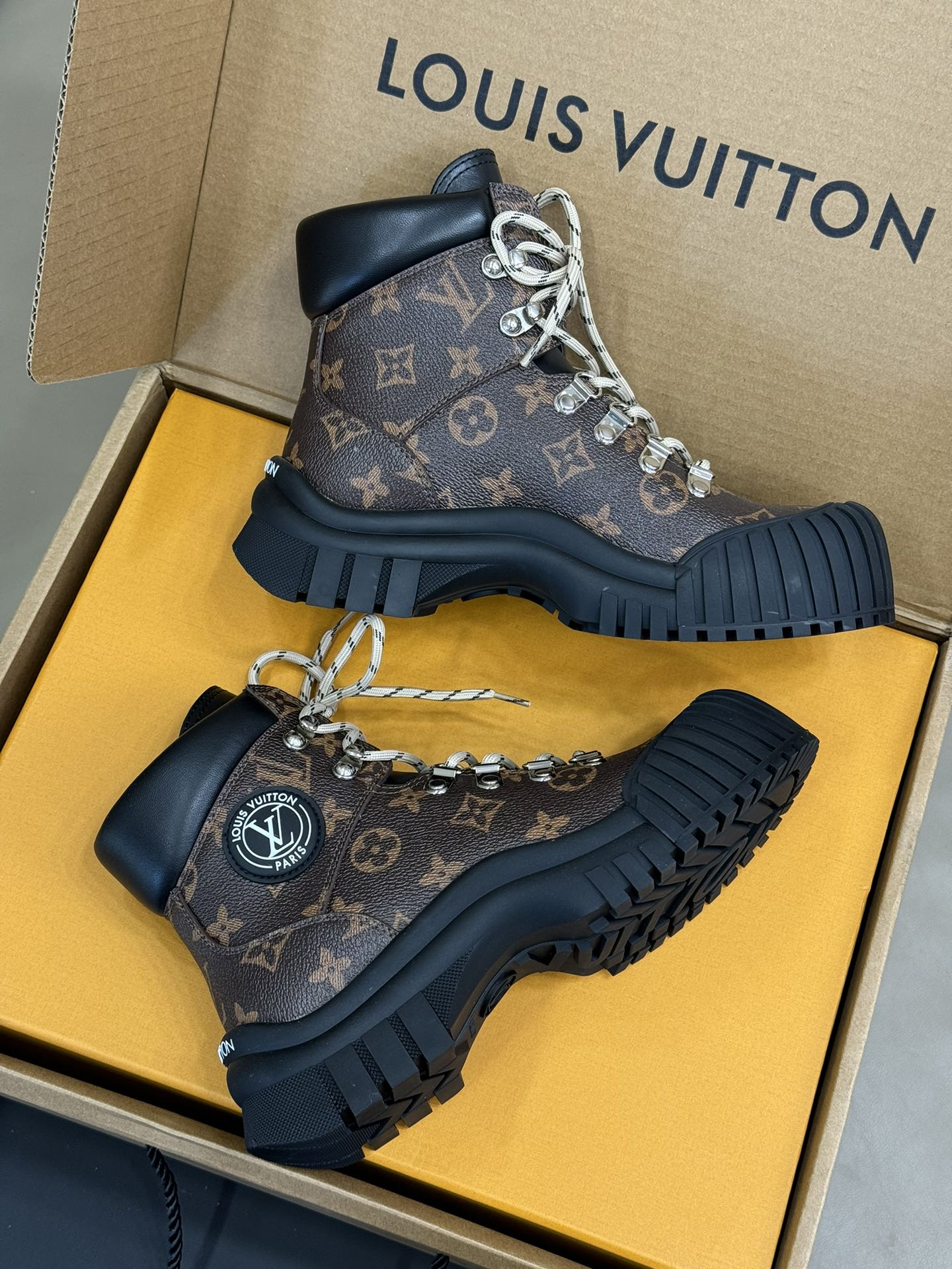 Stivali LV Ruby Flat Ranger in pelle di vitello marrone scuro