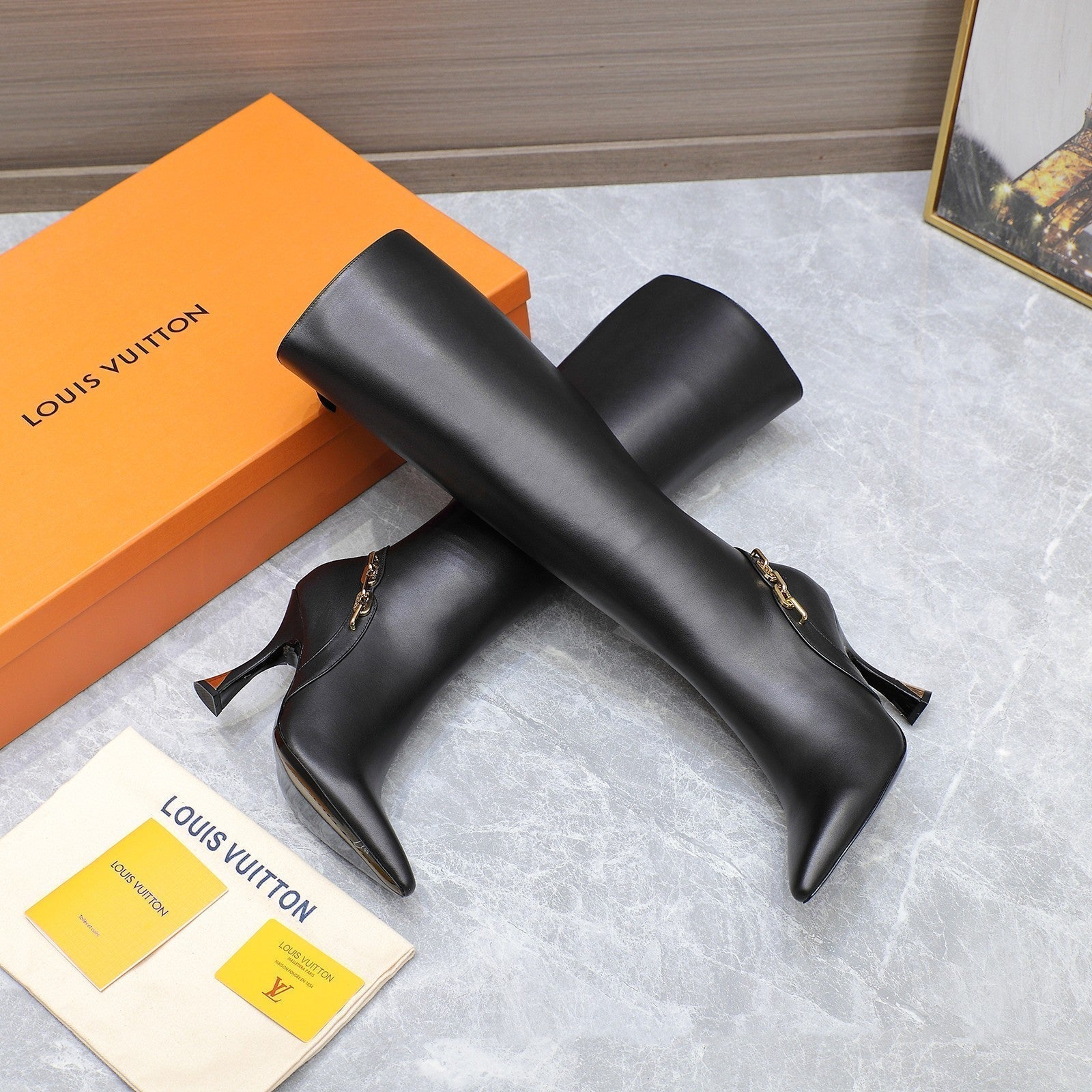 Stivale alto LV Sparkle 100mm in pelle di vacchetta nera
