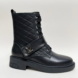 LV Citizen Flat Ranger Boot in pelle di vitello nera liscia