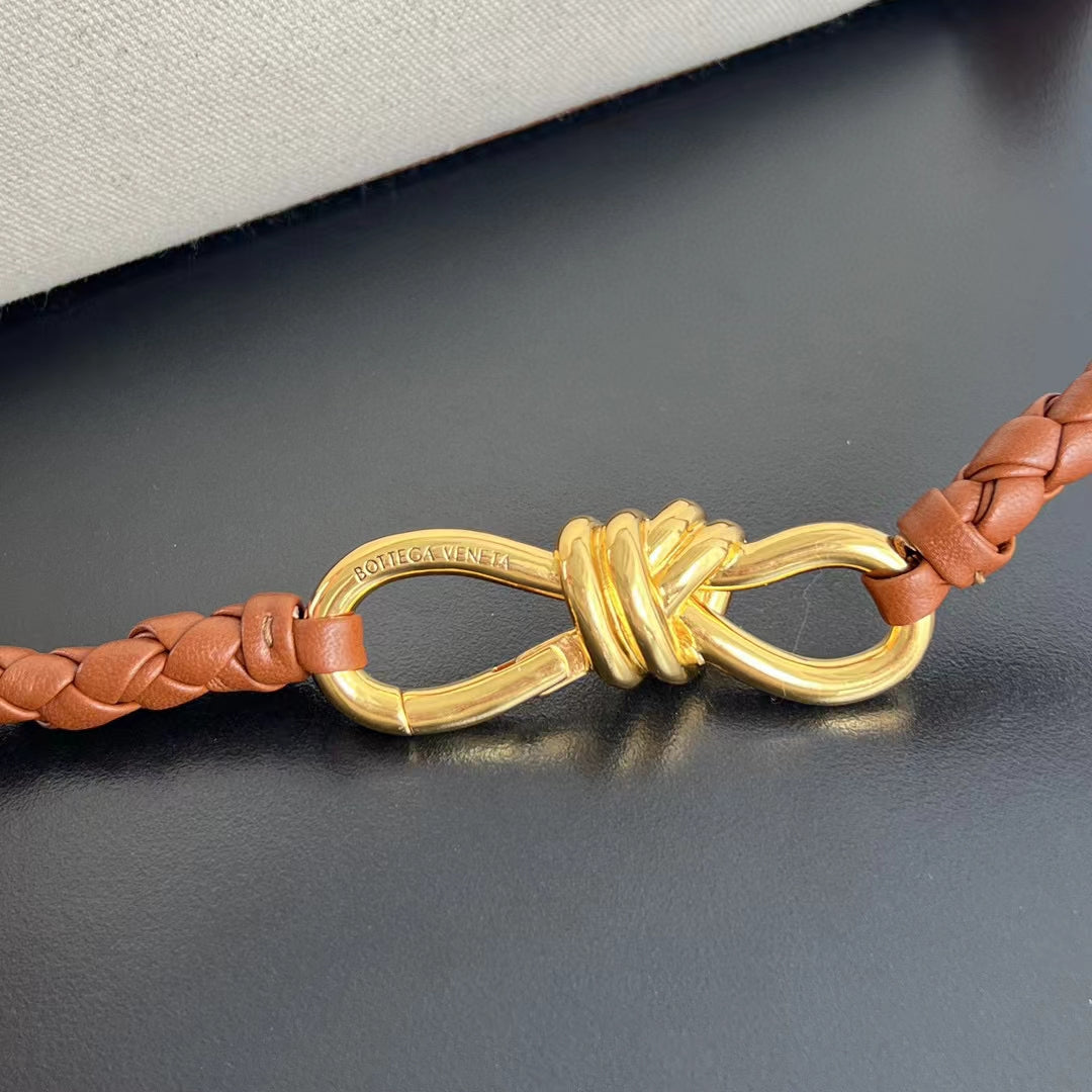 • Piccola borsa a mano in pelle intrecciata con tracolla scorrevole