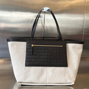 BORSA PORTELLO TOTE 53 IN PELLE DI VITELLO NERA E TELA BIANCA