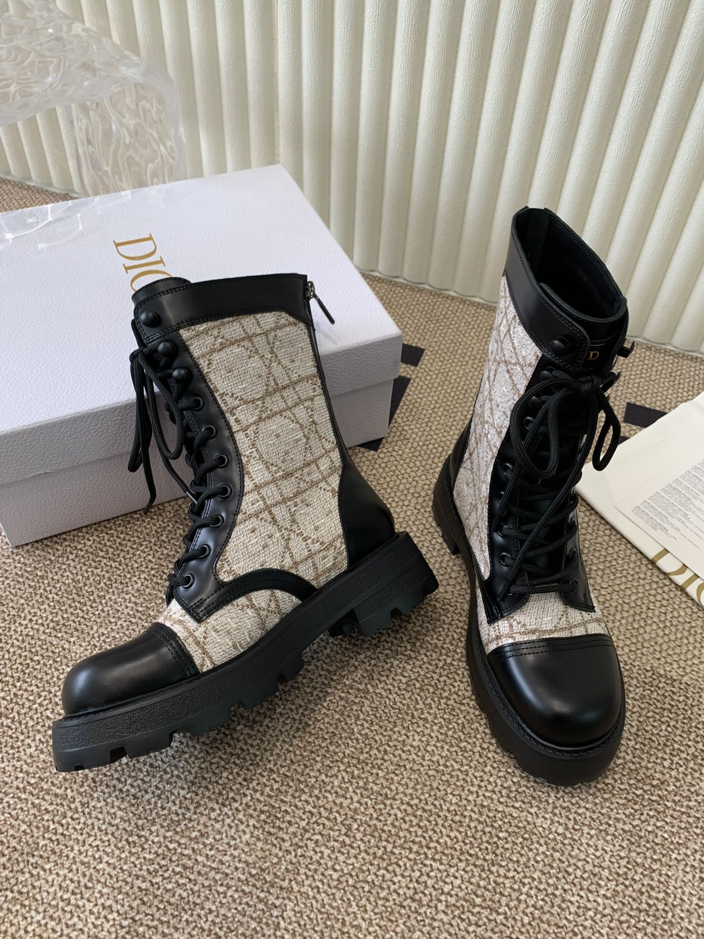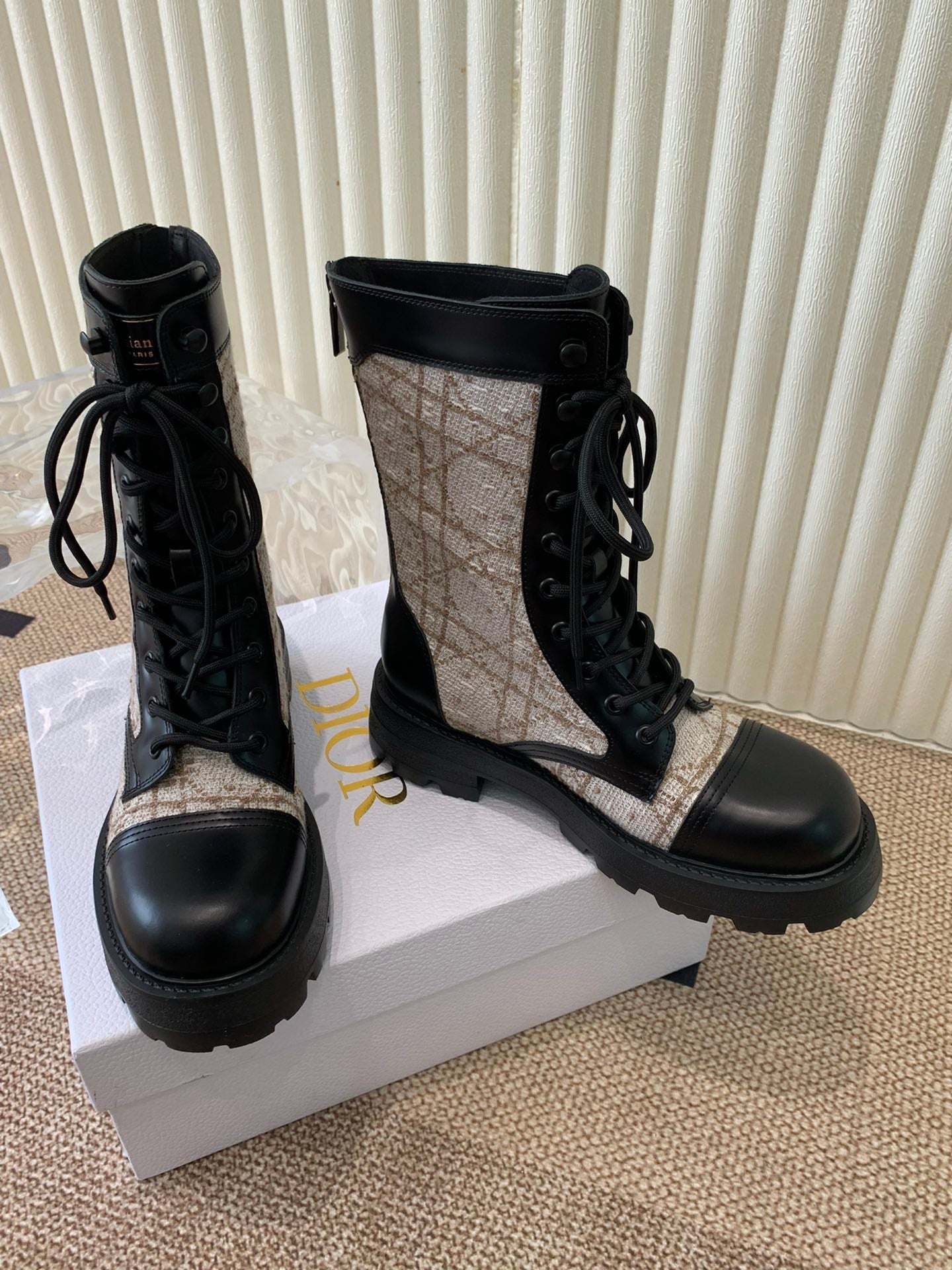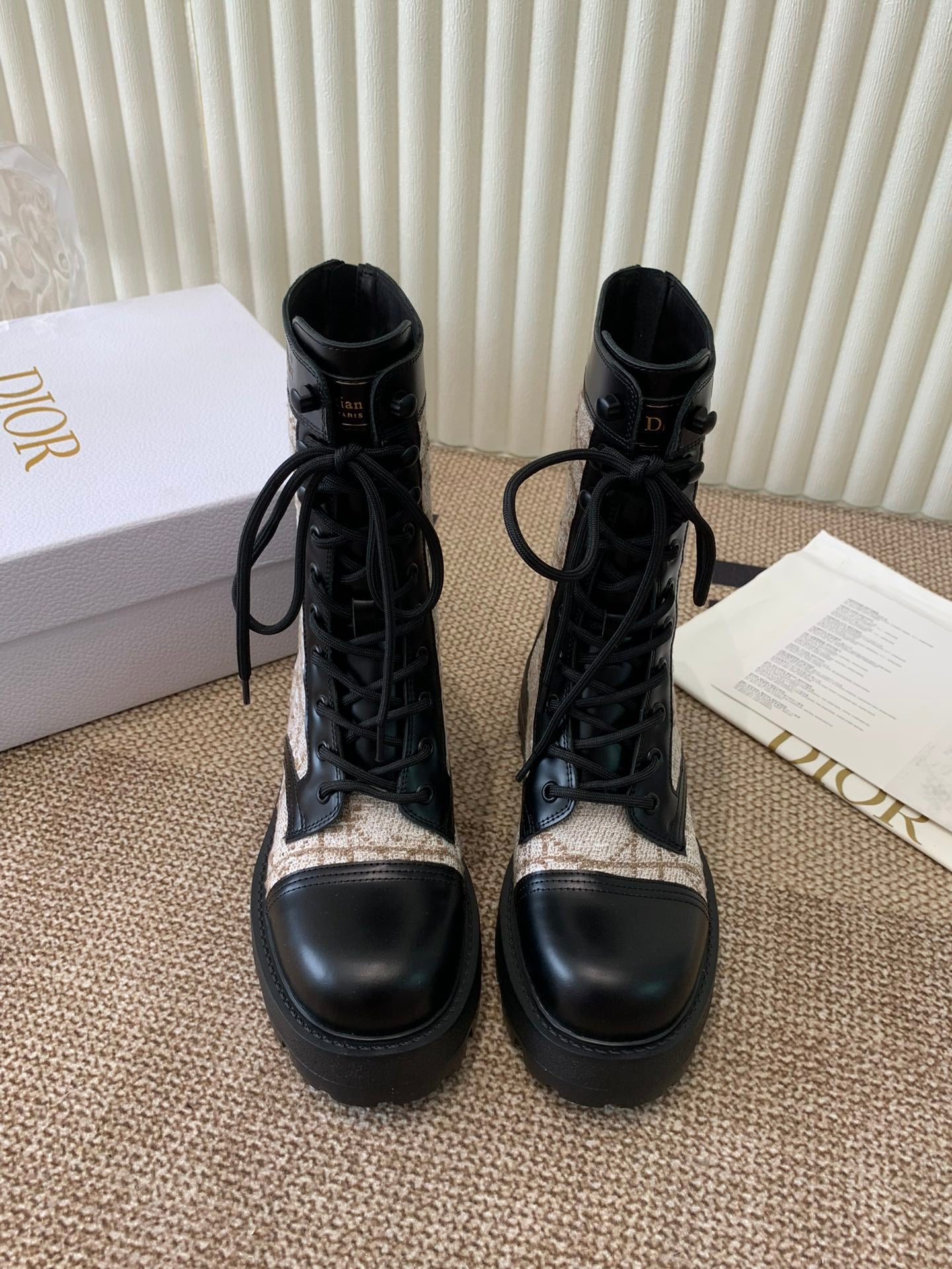 Stivaletto CD D-Unit in tessuto tweed beige e nero e pelle bovina 113478