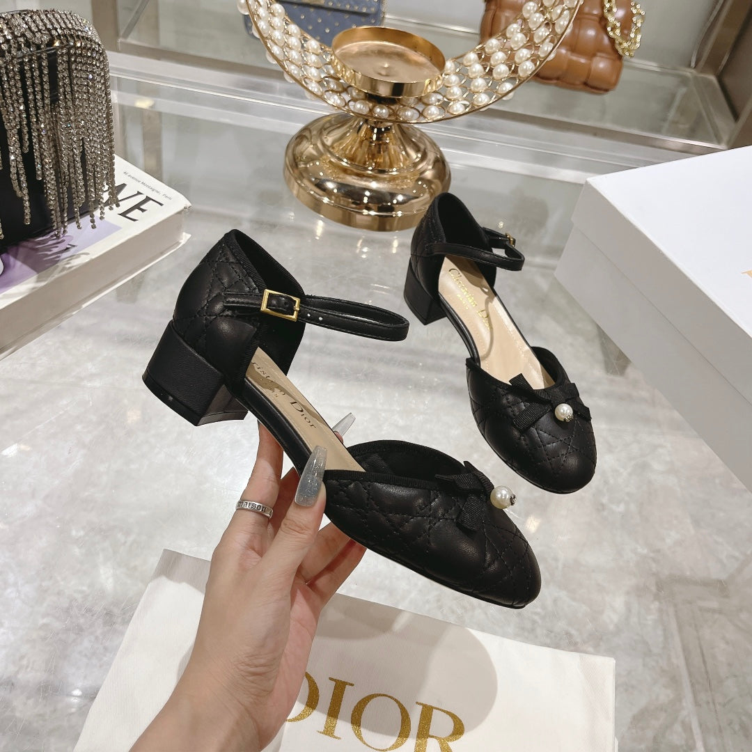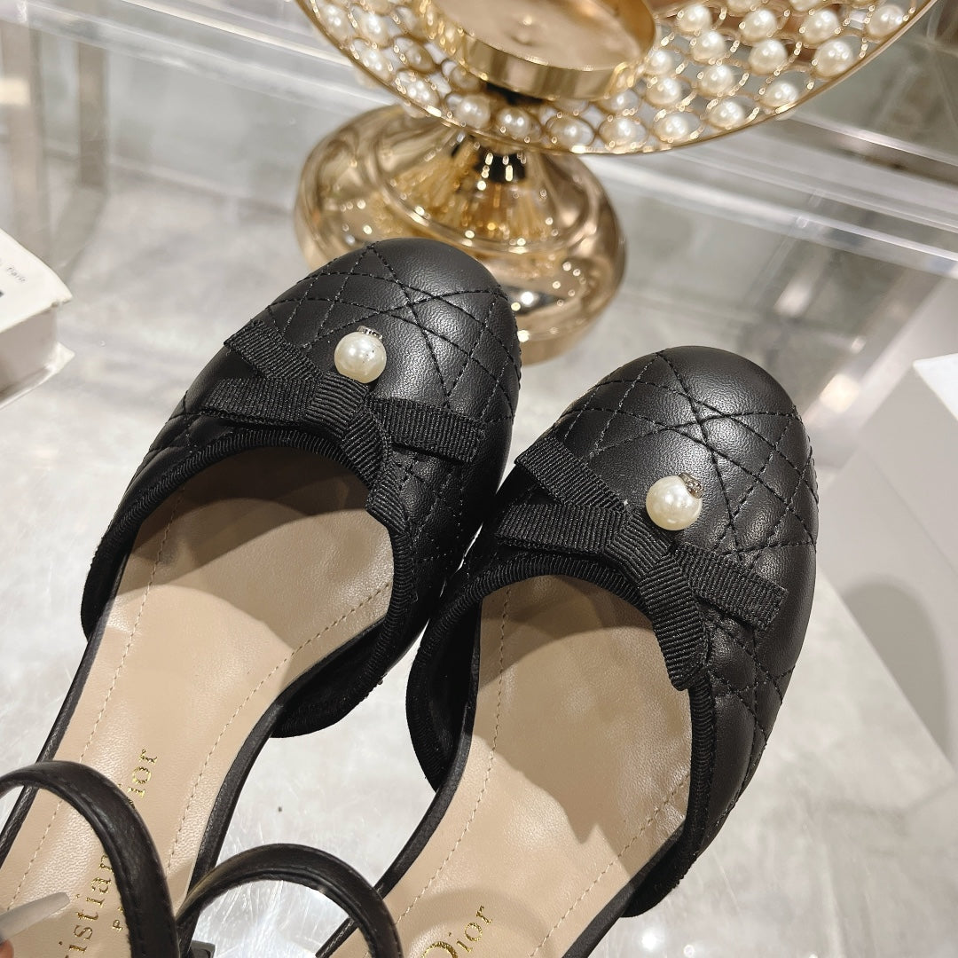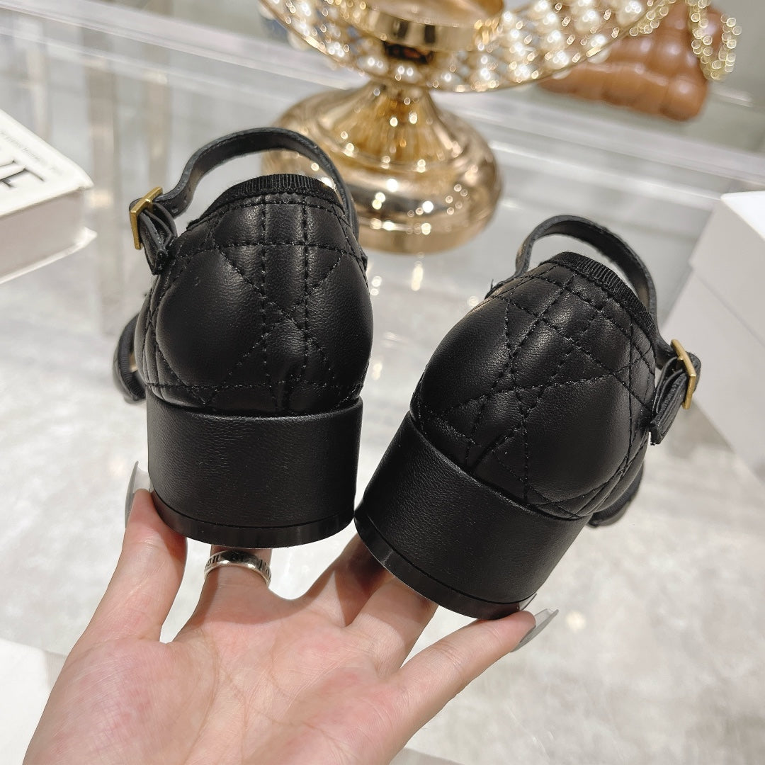 Ballerina CD in pelle di vacchetta trapuntata nera