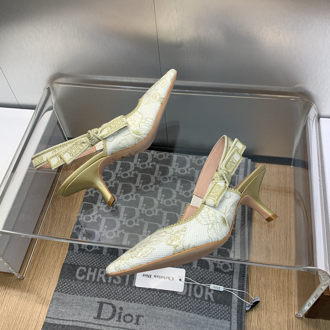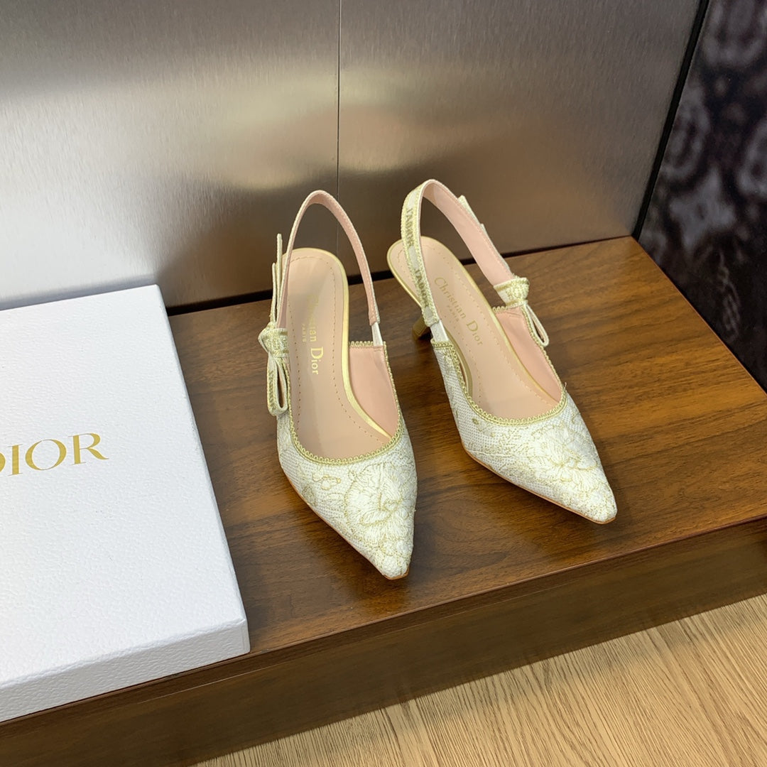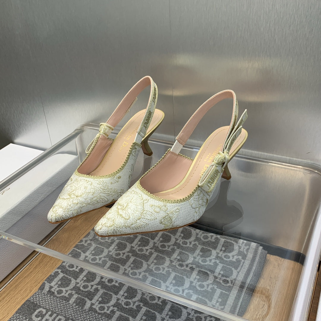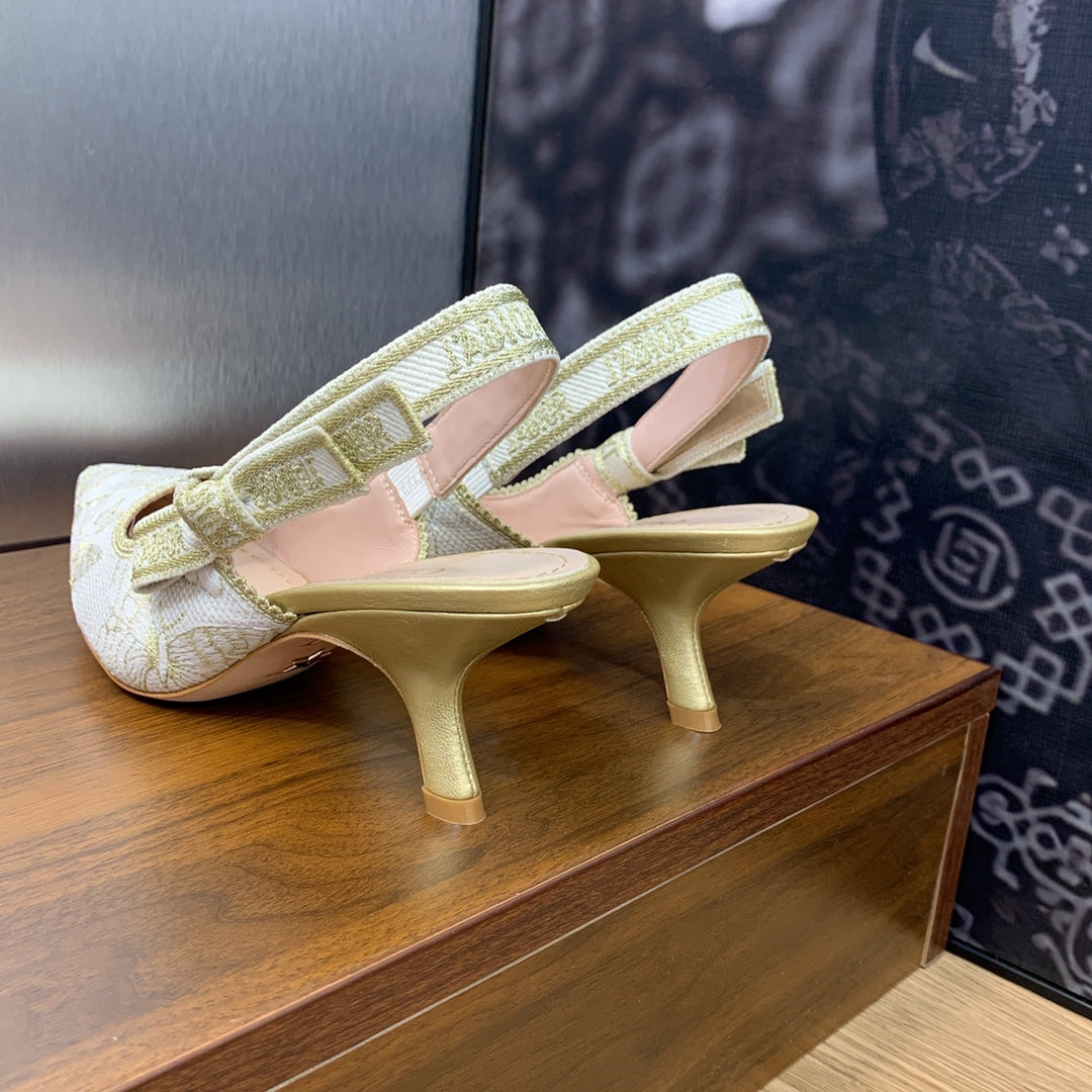 Décolleté JAdior Slingback 65 in cotone ricamato Toile de Jouy Messico bianco e oro con filo metallico
