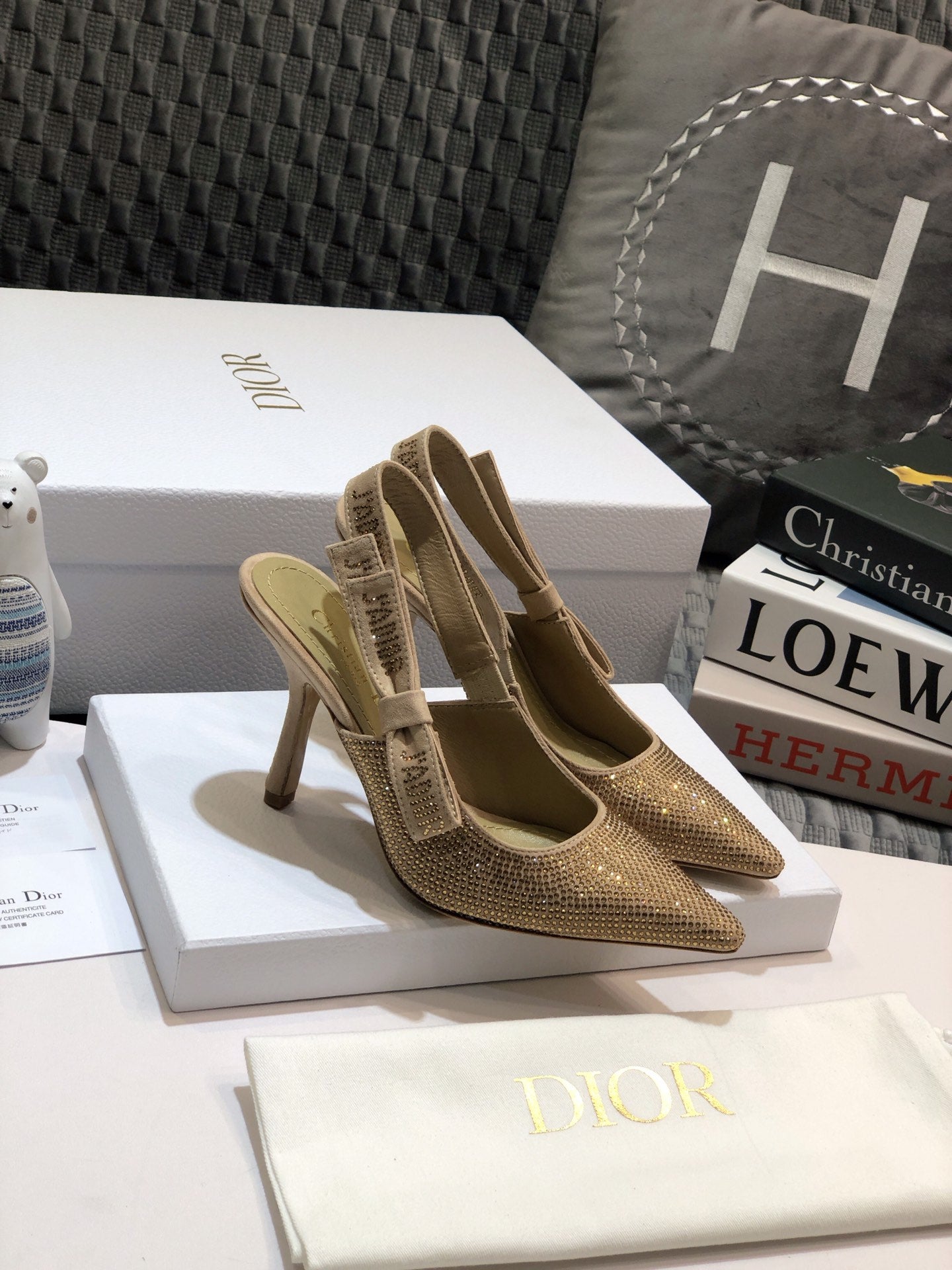 Décolleté JAdior con cinturino posteriore 95 beige con cristalli e tacco a spillo